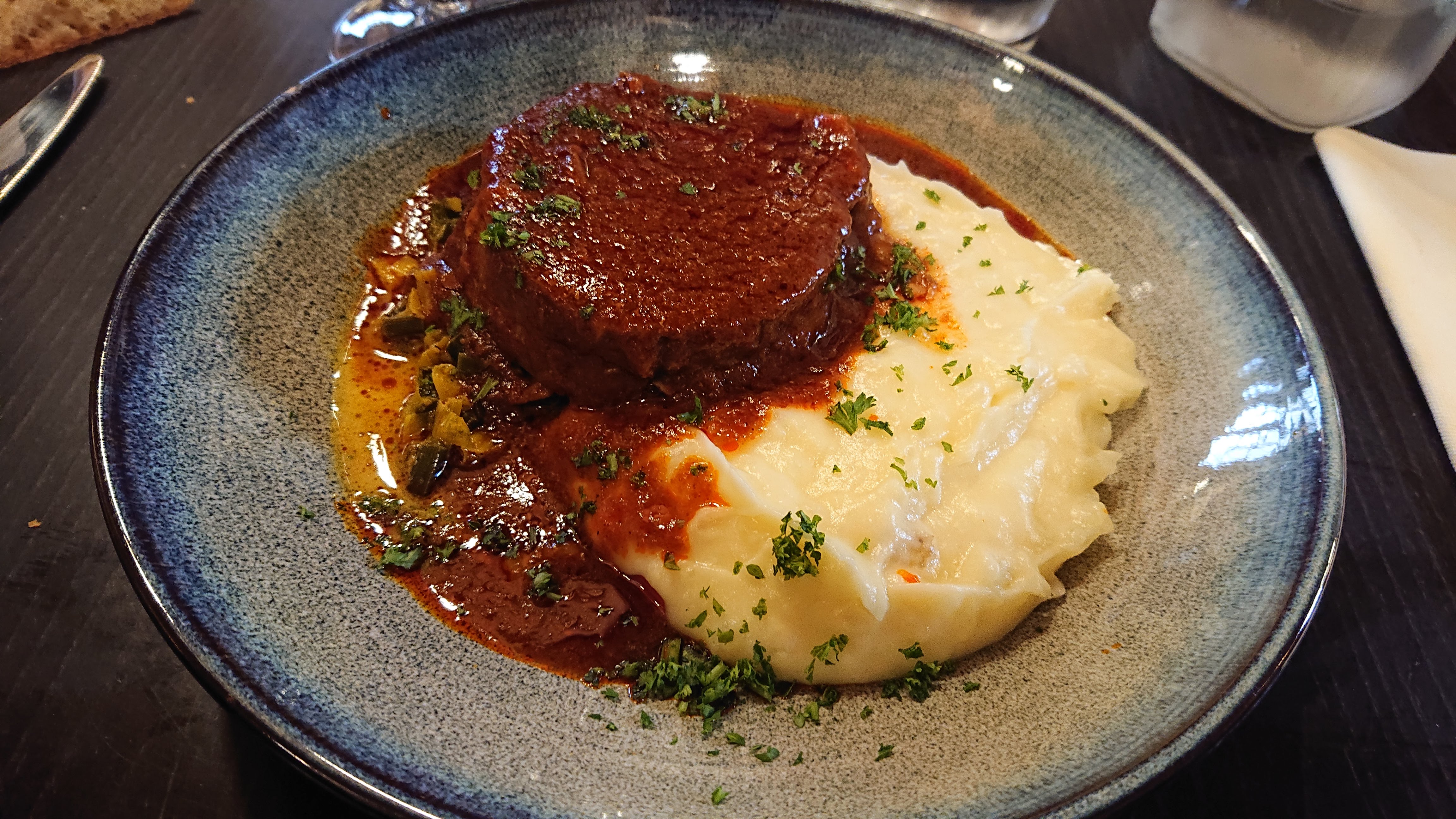 Cadre très agréable. Mais la viande est un peu trop dure.