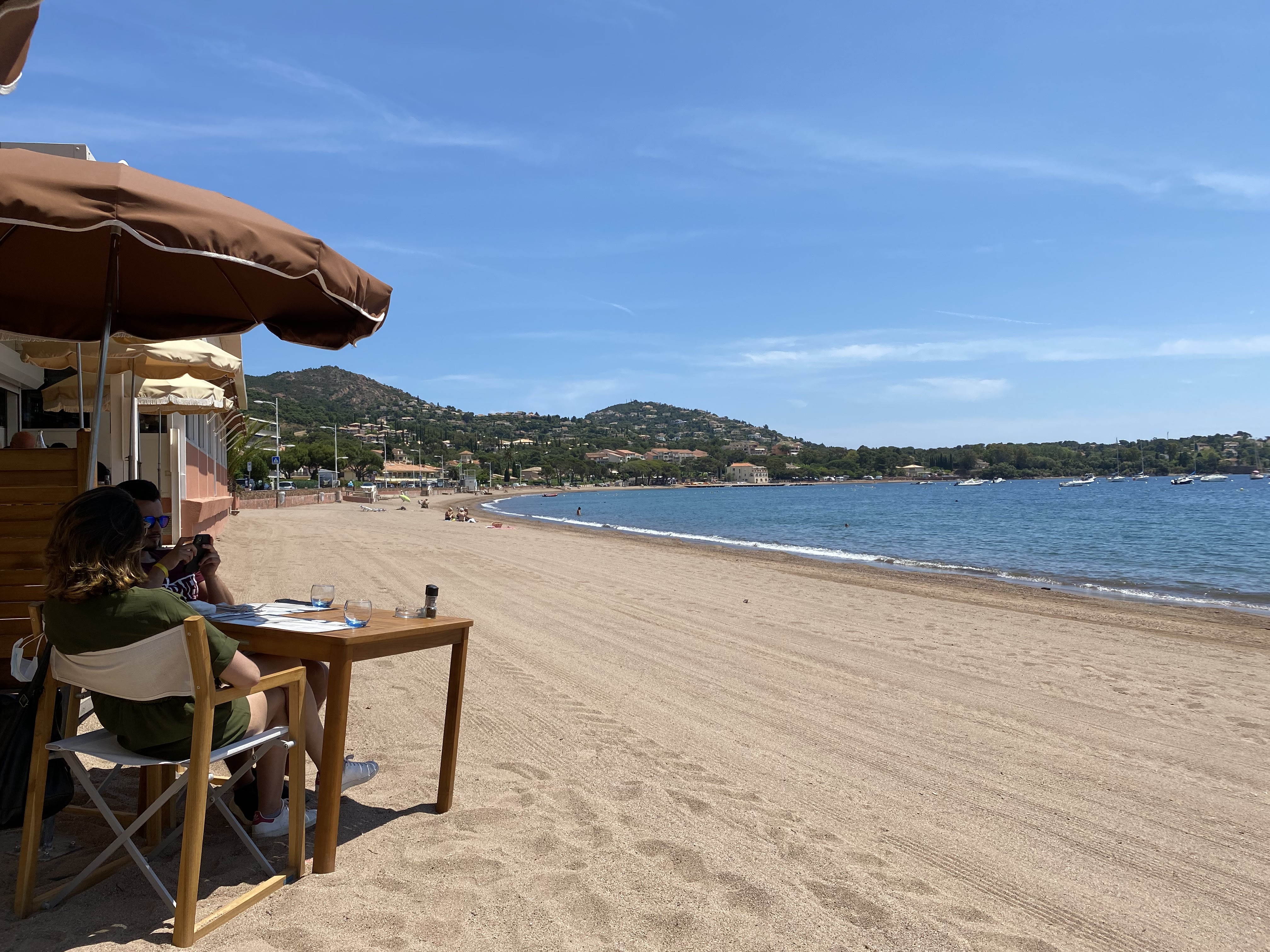 Petit café les pieds dans le sable. Seul bémol le parking payant alors que c'est gratuit au dramont. Sinon la vue est top.