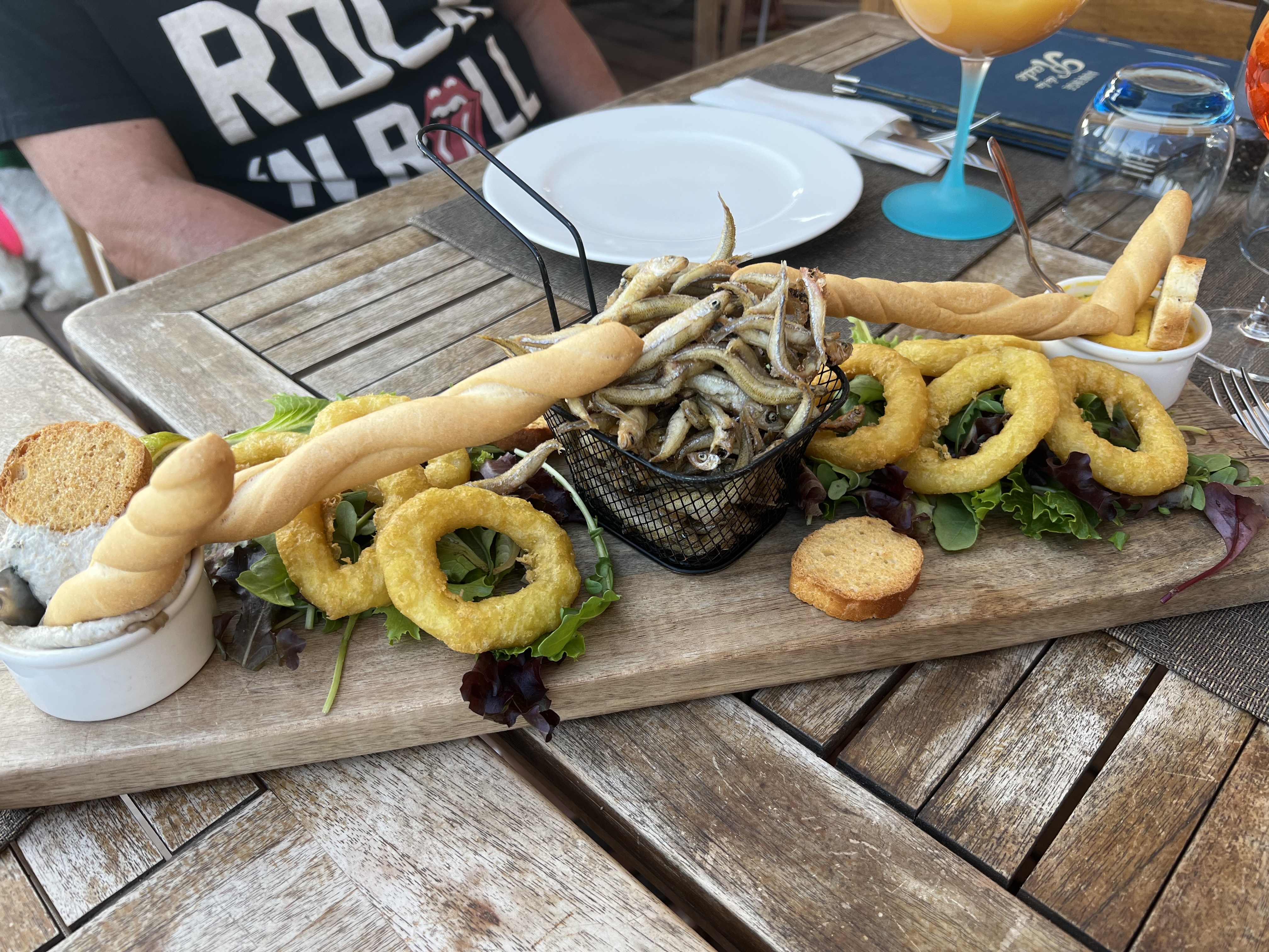 Le cadre est magnifique, les pieds dans le sable sur la plage d'Agay. On s'est fait avoir avec la planche mixte : très copieuse, a 2 ça nous a fait le repas, on est passé direct au dessert derrière 😅 Belle sélection de vins de Provence, service très bon. Établissement a recommander
