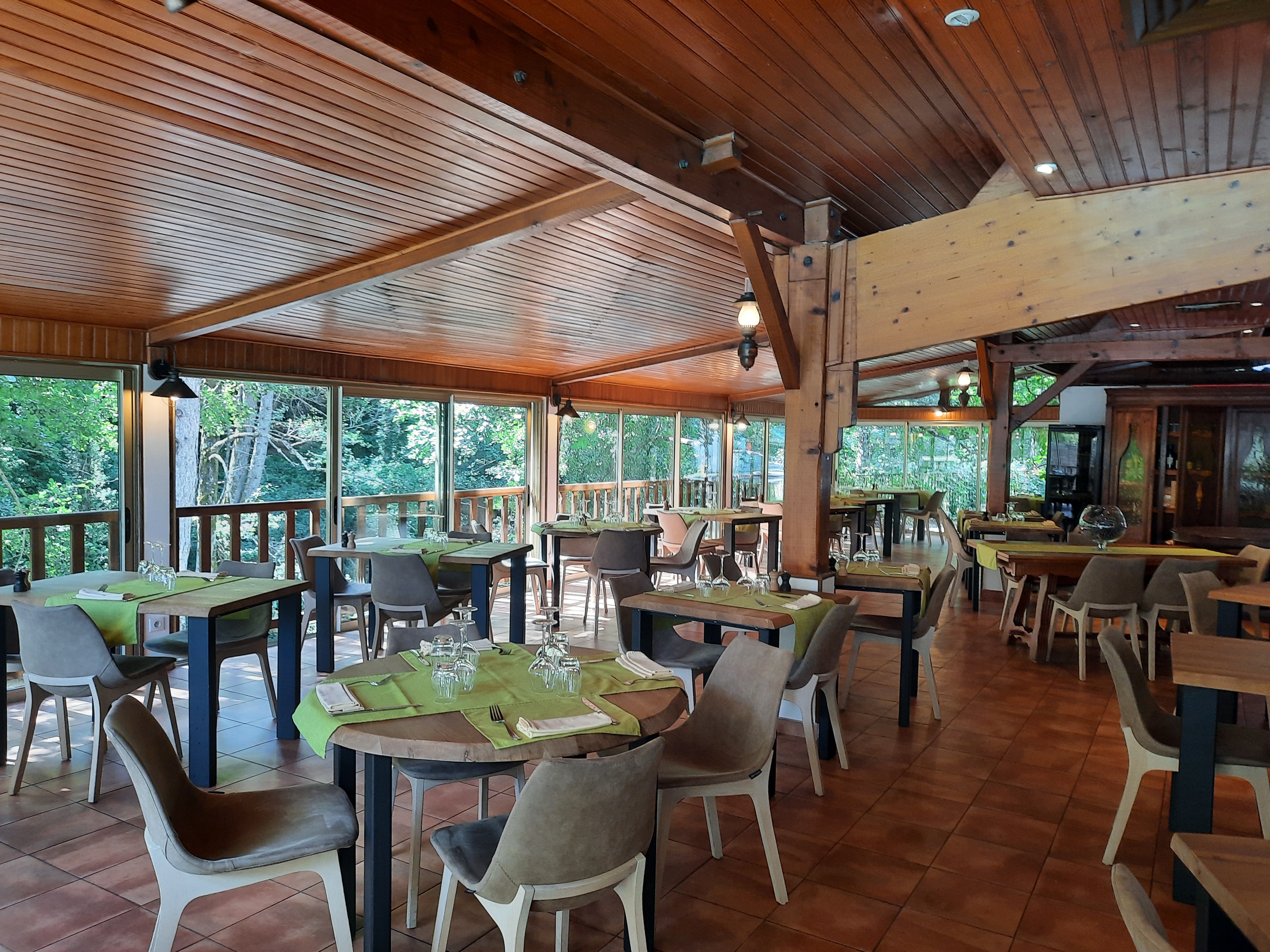 Cadre magnifique, très jolie terrasse au dessus de la rivière et restaurant très agreab’e