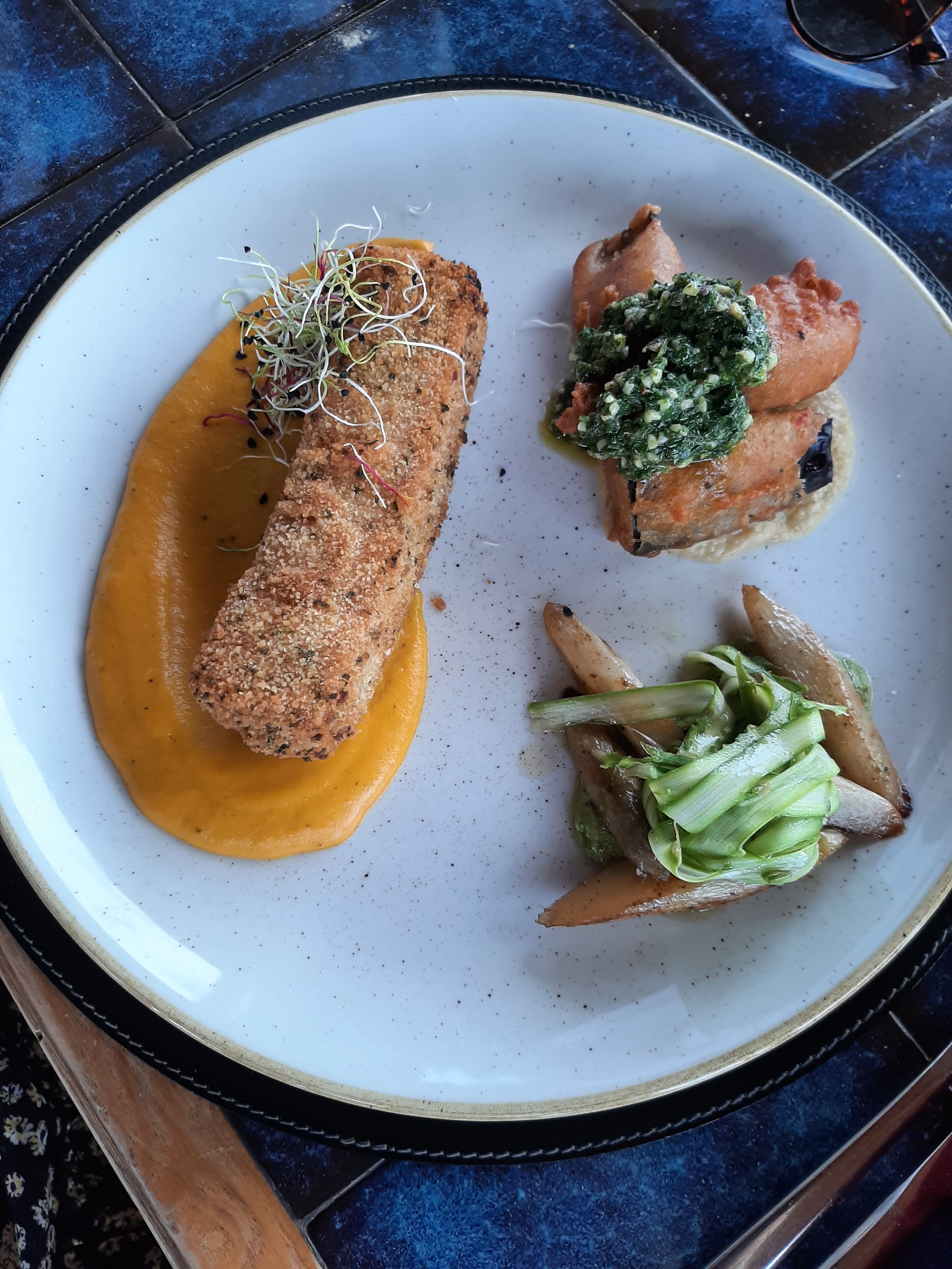 Cadre superbe, accueil souriant, cuisine excellente : poisson parfaitement cuit avec un accompagnement savoureux. À recommander.