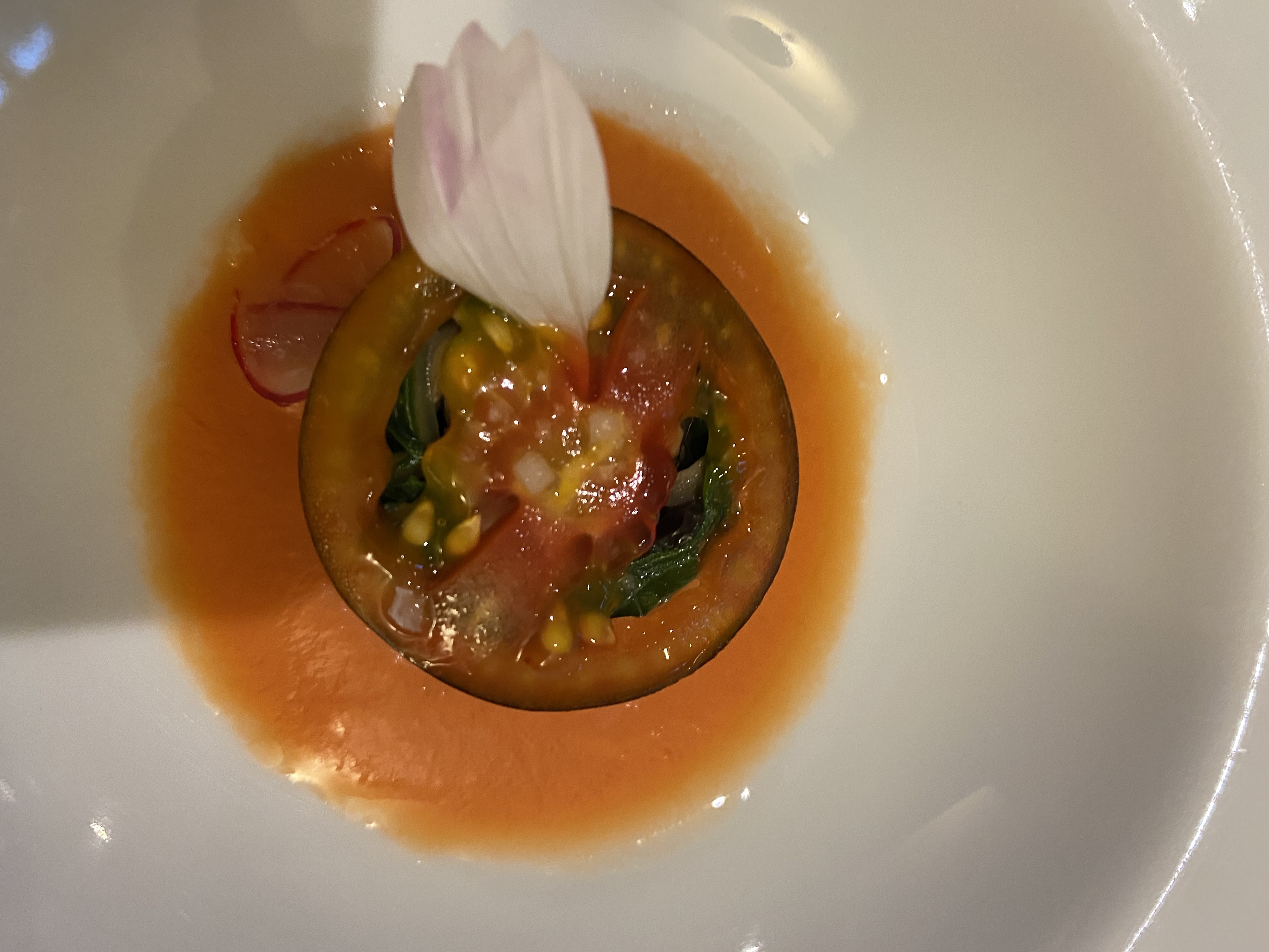 Une équipe qui danse et virevolte avec bienveillance. Une danse d'attention. Des mets venus de je ne sais quelle galaxie.. .le chef n'a pas su me dire bref le jardin culinaire des merveilles. Petit bémol il faudrait prévoir des mouchoirs parce que quand c'est fini...cest la tristitude garantie. Il faut absolument connaître et vivre cet endroit surréaliste. Merci pour ce moment d exception.