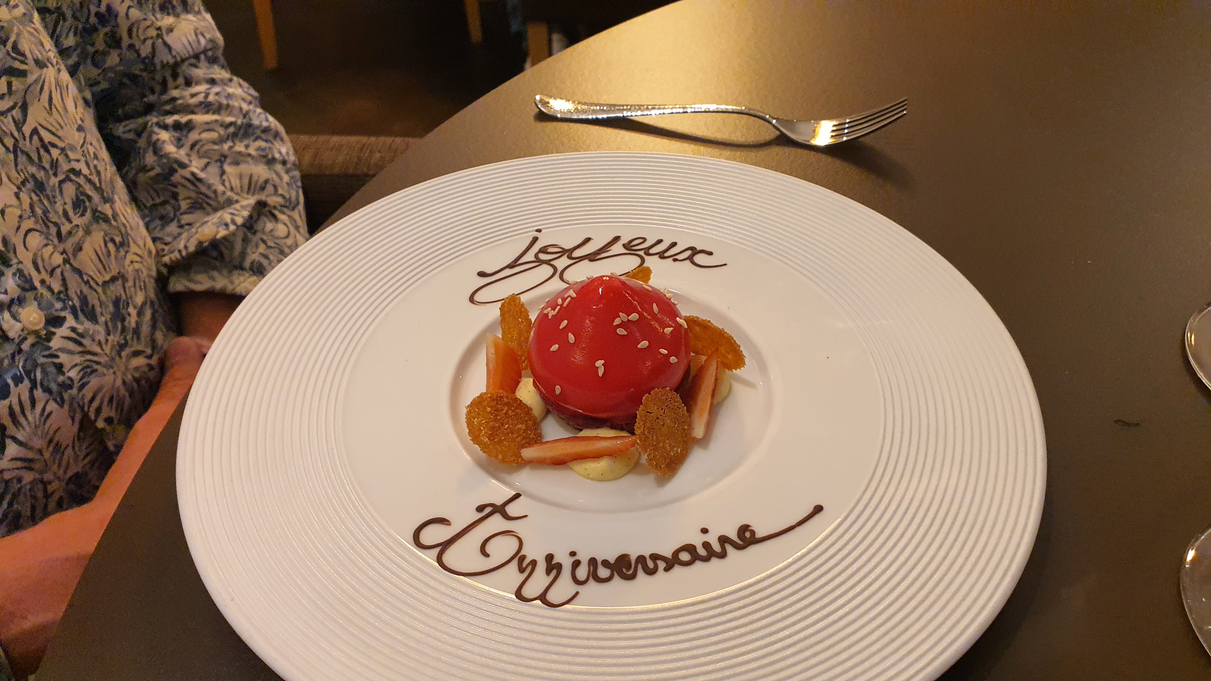 Nous avons passé une excellente soirée..au petit soin. Une ambiance décontractée .agréable. un personnel agréable. Une gentille attention sur l assiette du dessert pour l anniversaire 🎂 de mon mari .la cuisine edt excente avec des associations de goûts incroyable. merci pour cette belle soirée