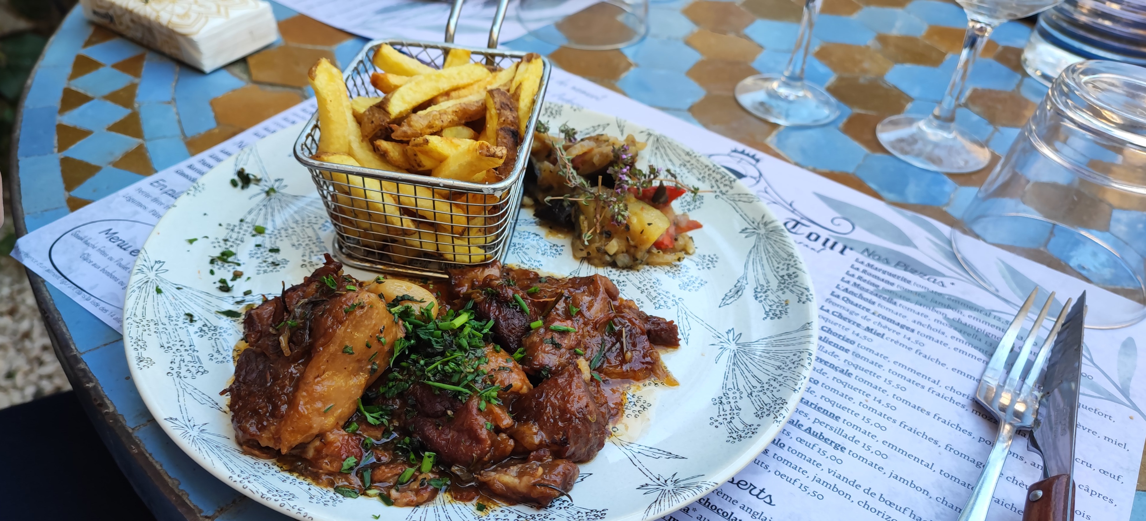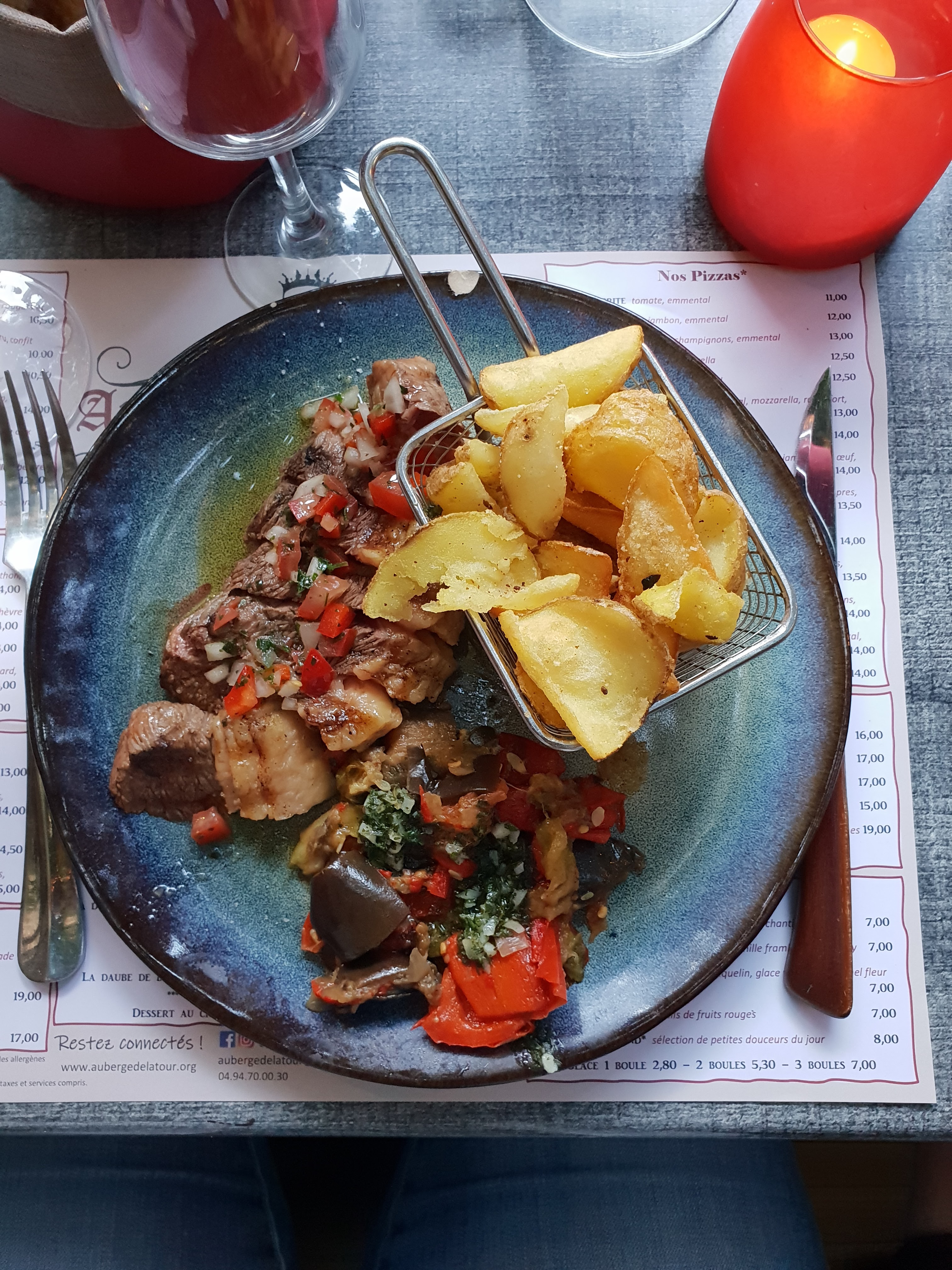 Déjeuner au restaurant Menu à 25 euros un peu cher mais de qualité Très bonne daube de bœuf à la provençale Je recommande