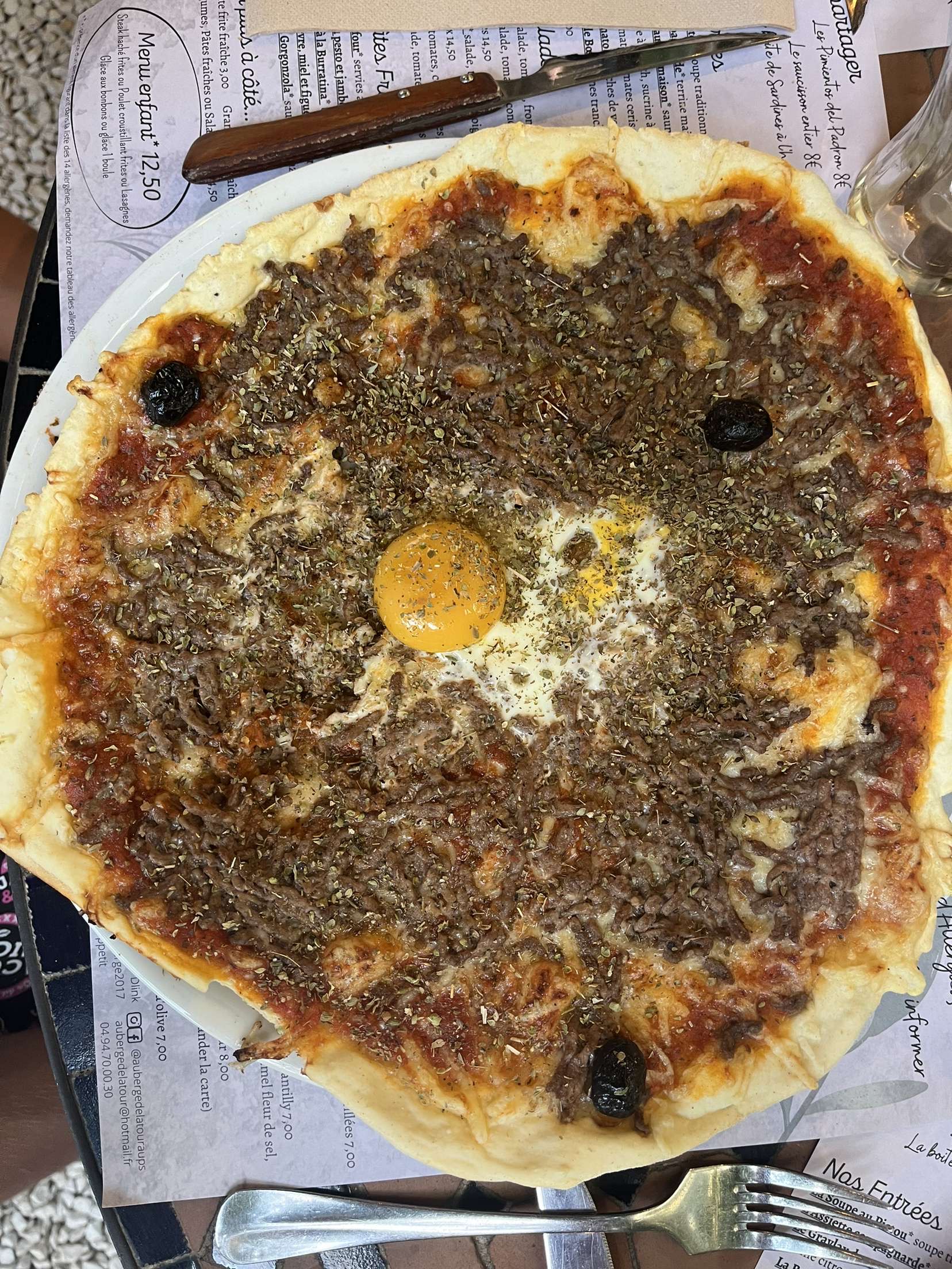 Un cadre exceptionnel !! Une cour ombragée au cœur du village. J ai mangé une pizza excellente et on a pris aussi une dorade succulente. Service rapide efficace et adorable 😻 réserver n est pas une option 😂 ça brasse énormément ! Normal c est très bon. On a passé un excellent moment à un tarif très abordable. Excellente expérience 🧪 nous reviendrons !