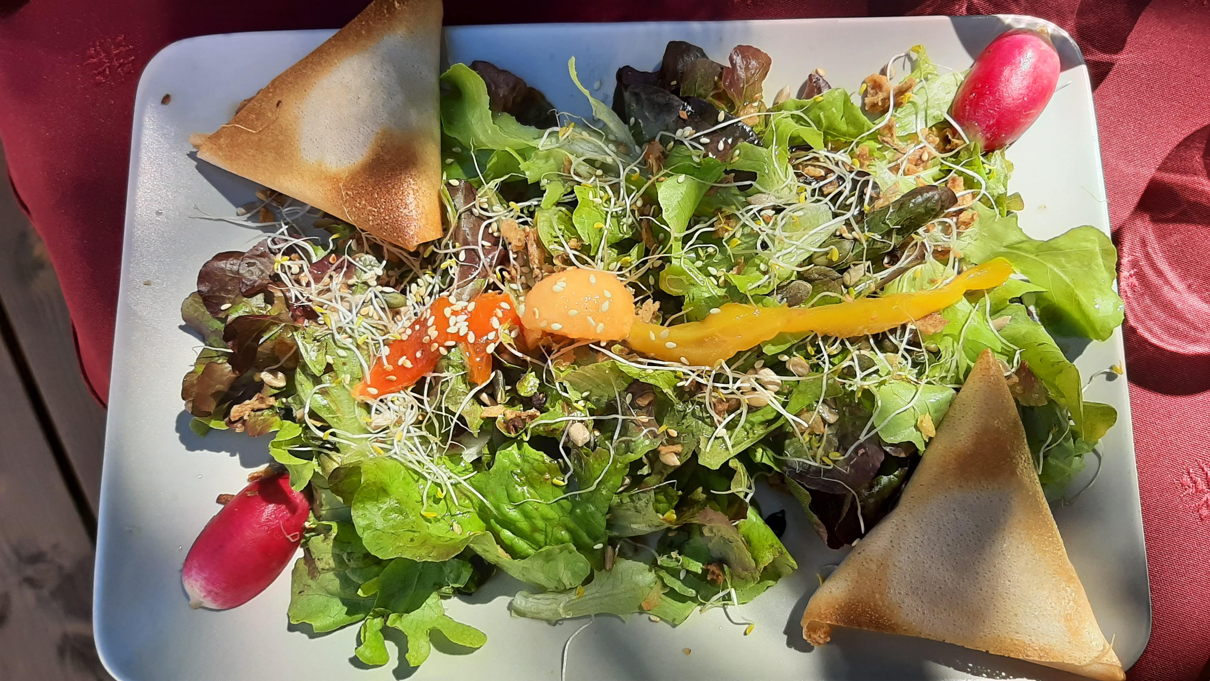 Terrasse sympas dans la nature, cuisines aux notes exotiques originales, faite avec des produits locaux de bonne qualité. Le personnels est très attentif pour que votre passage soit le plus agréable possible.