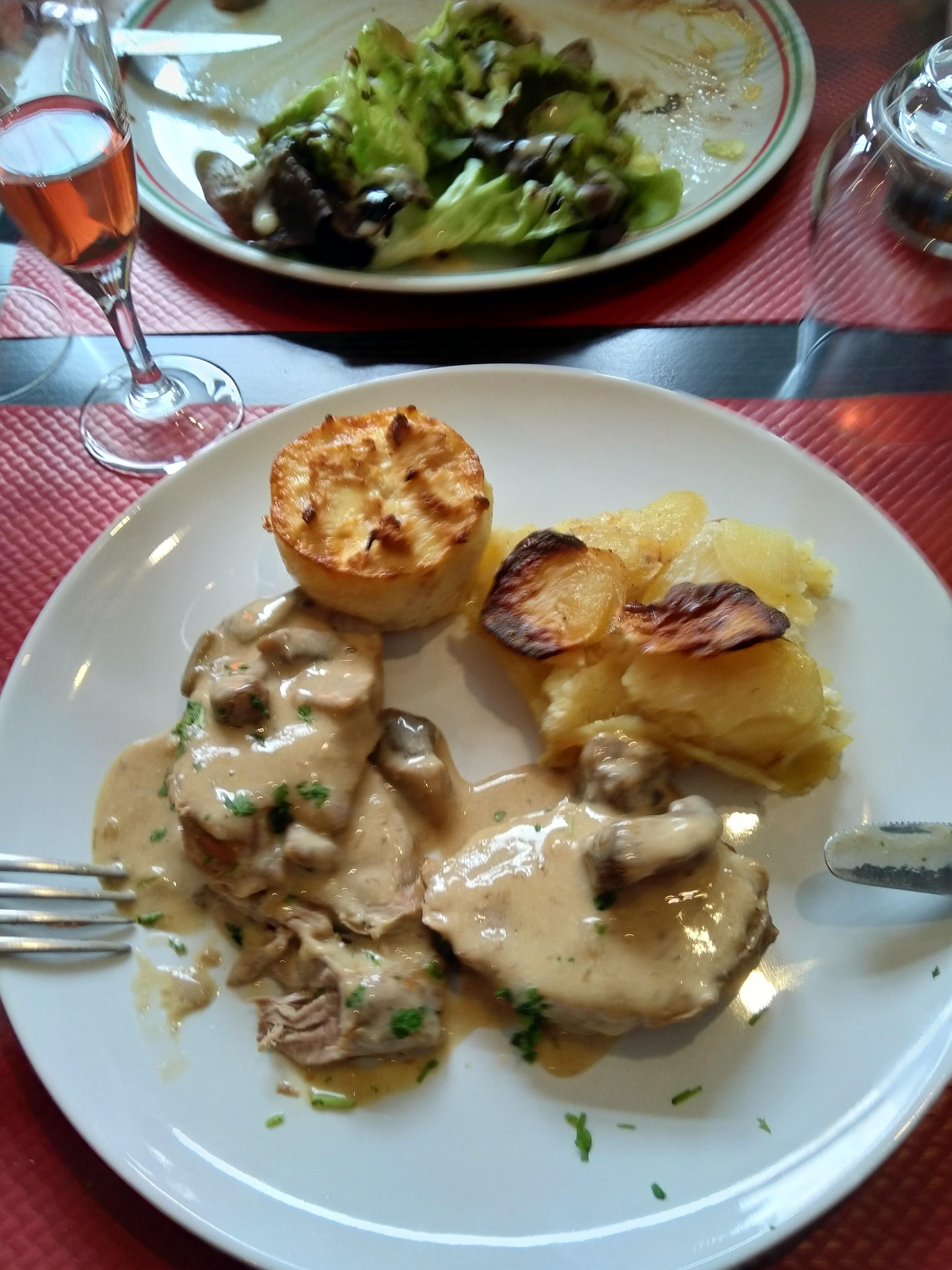 Entrecôte frite et veau Marengo viande tendre , repas copieux avec viandes de qualite ,nous reviendrons !