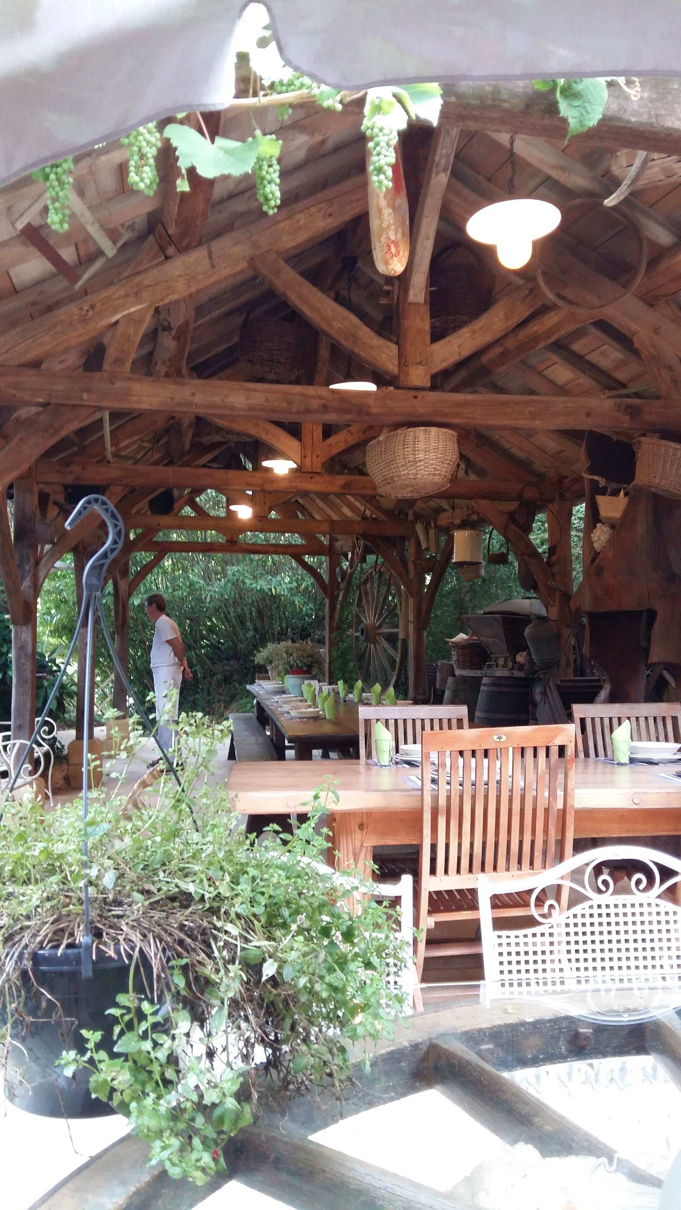 Nous avons dîné dehors, le cadre est ravissant et propice à la détente. L ambiance est bon enfant et on s y sent bien. La cuisine est copieuse et délicieuse. Le patron fait le tour des tables dans la bonne humeur, il a même fait pleurer de rire notre fille de 5 ans !! Avons passé un moment extra, hors du temps, que nous étions bien...