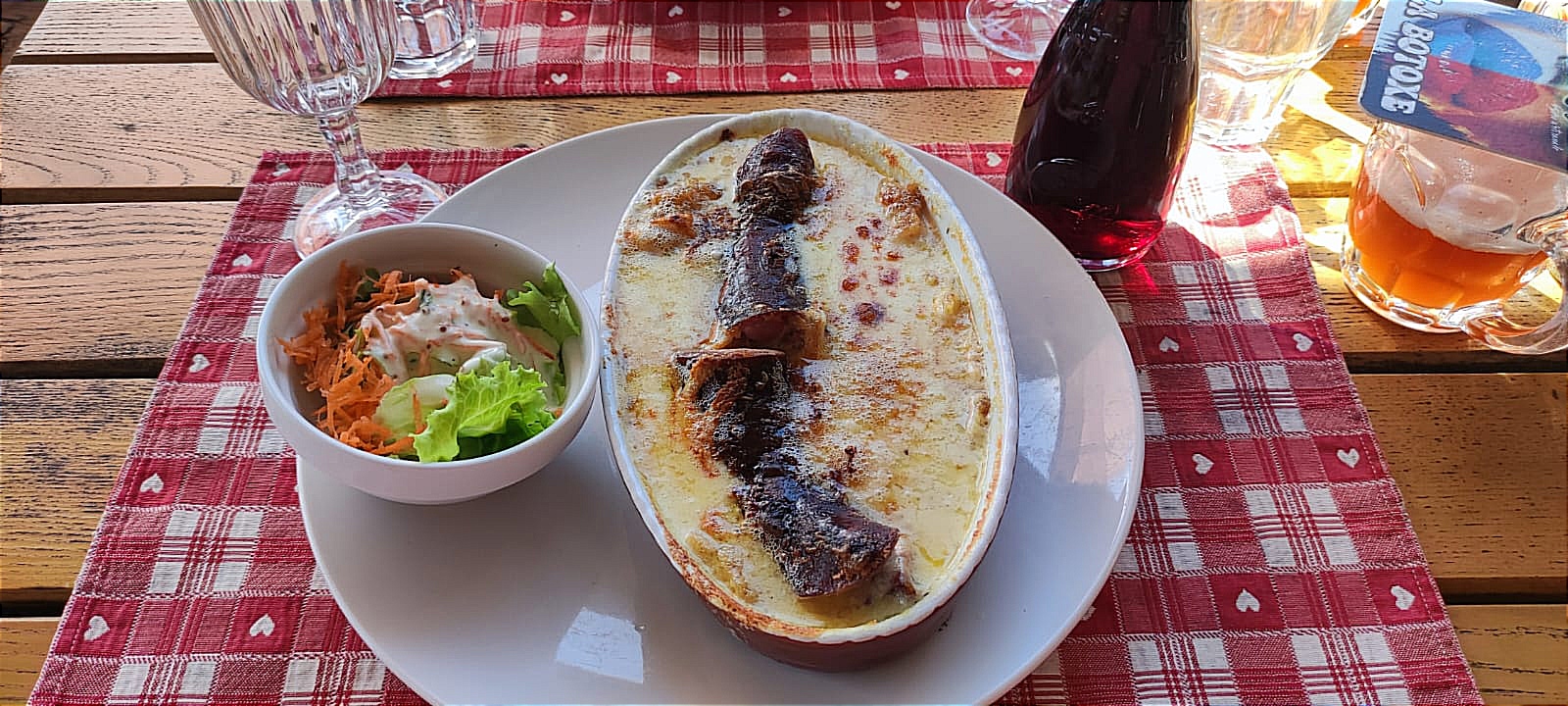 Lieux réservé à ceux et uniquement à ceux qui veulent découvrir la cuisine du terroir (vosgien). Vous êtes dehors, l'odeur des cuisines vous font du bien et vous donne l'eau à la bouche! Il ne faut pas s'attendre à du gastro. Là quand on mange un bout de lard, on ne se demande pas ce que c'est ! La cuisine est généreuse. La carte peut paraître compliqué à prime abord. Si vous vous donnez la peine, vous pourrez dénicher votre bonheur! Que dire du service? Exactement ce que je recherche quand je vais au restau. Sympathie, humour, le mot pour rire. A la bonne franquette... J'ai adoré !!! En conclusion: Tout me fait penser au repas du dimanche midi chez ma grand mère. C'était simple, généreux et bon. Bravo!!!