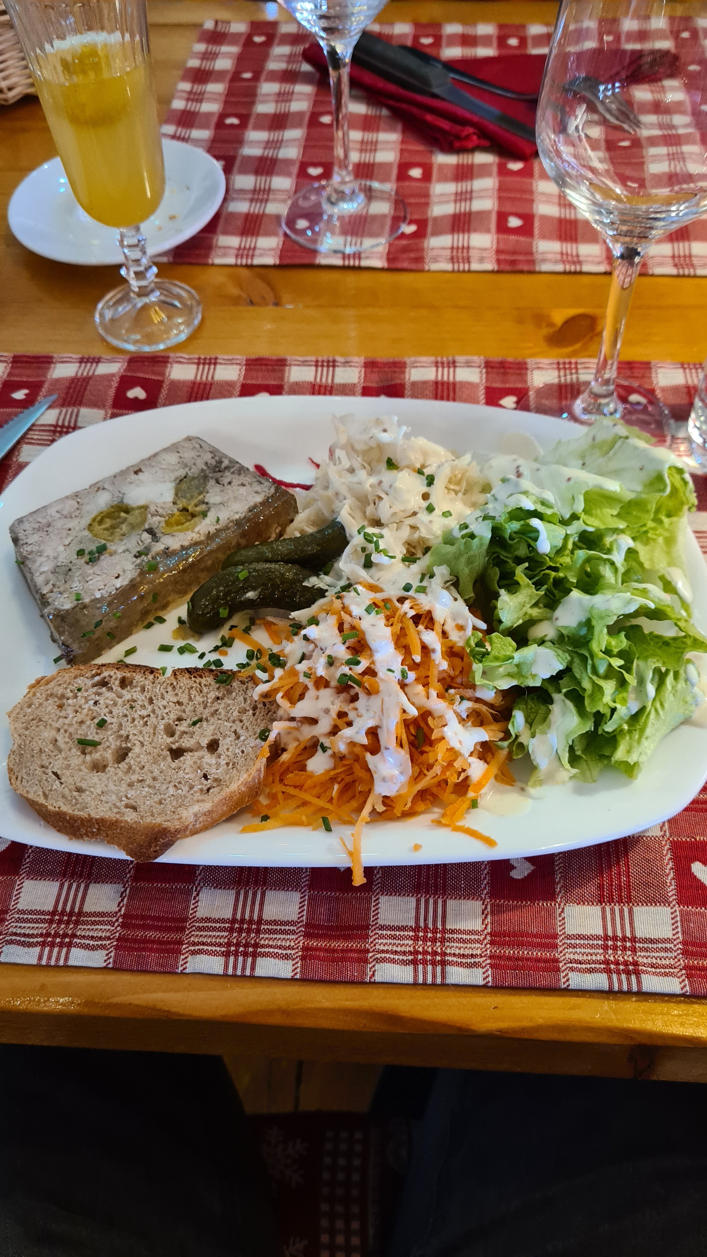 A faire vraiment c'est excellent Vous voulez manger local c'est là-bas Il y en a pour tout le monde même pour ceux qui ne mangent pas de viande. De l'entrée au désert tout est fait maison avec des produits locaux. Leur pâté avec de la mirabelle quel délice ! Les personnes sont gentilles et agréables Côté environnement c'est beau c'est charmant. J'imagine que l'été doit être très agréable avec leur immense terrasse. Si je reviens dans le coin j'y retourne😁🍽 A bientôt