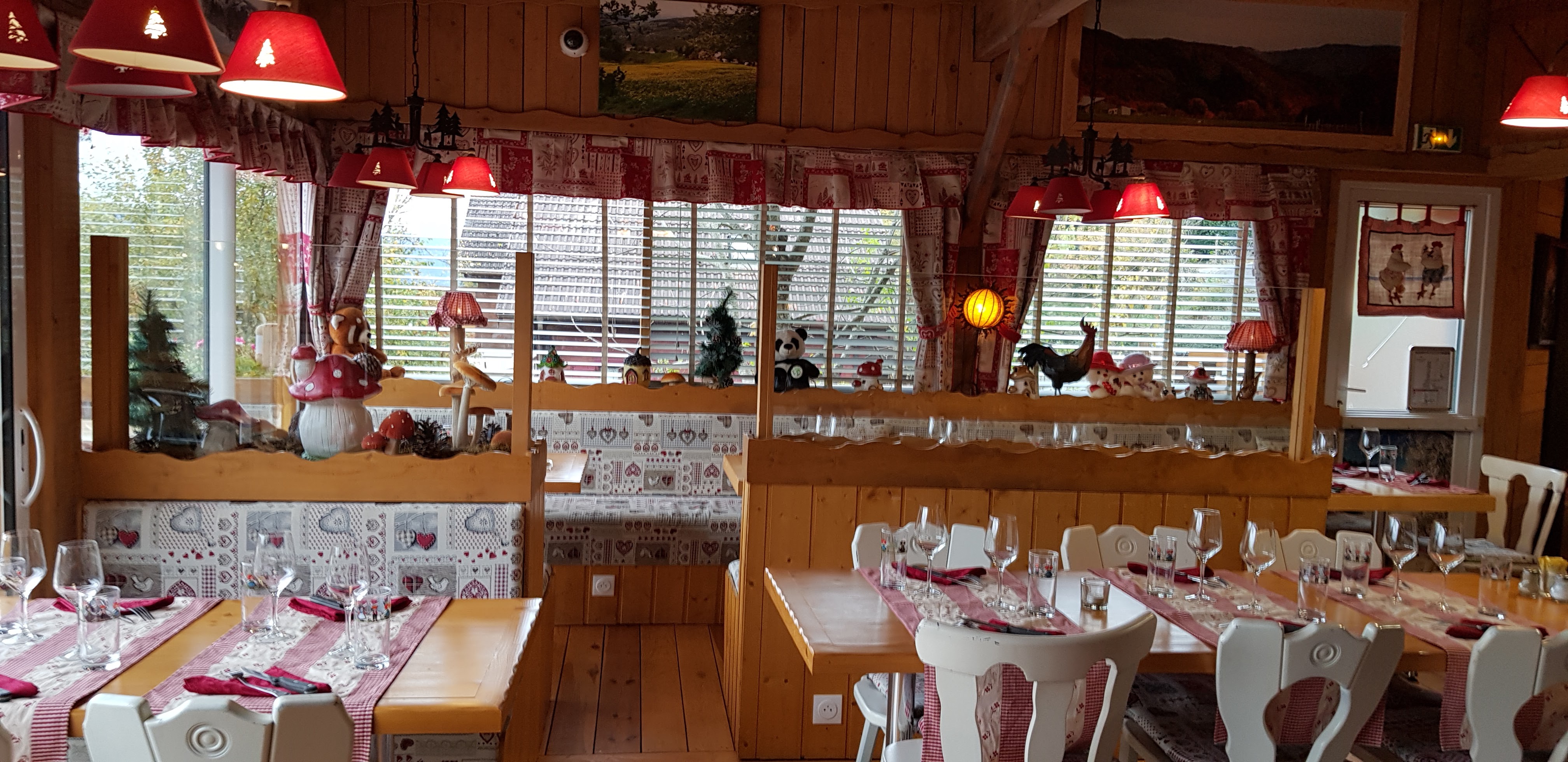 Nous y sommes allés pour manger après une randonnée (donc pas d'avis sur les chambres). On est loin de l'ambiance des fermes auberges ; plusieurs salles, un parking de plusieurs dizaines de voitures, une terrasse énorme (avec une vue agréable) et une décoration un peu comme une taverne tyrolienne. Un bon point : il est possible d'arriver tard (dans notre cas 13h30). Le service est efficace et relativement rapide alors que c'était plein.