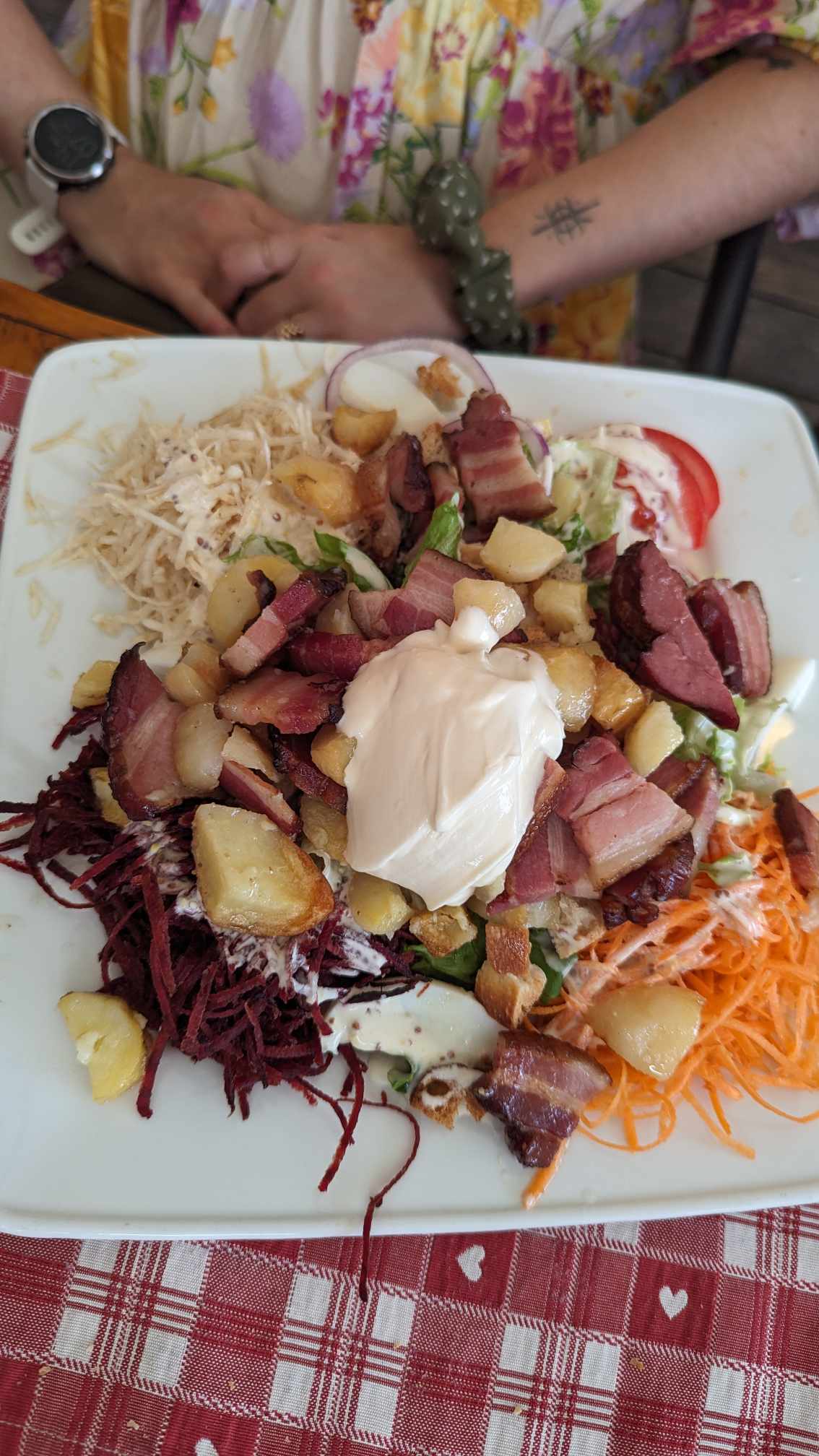 Bonjour, le cadre est magnifique, la déco est très belle, les plats sont bons cependant je regrette beaucoup que le fait de fumer soit autorisé sur la terrasse au milieu des autres clients. En effet, lorsque nous sommes venus, il y avait une table avec 2 fumeurs, je ne comprends pas que cela soit autorisé. Cela a malheureusement gâché notre expérience dans cette auberge.