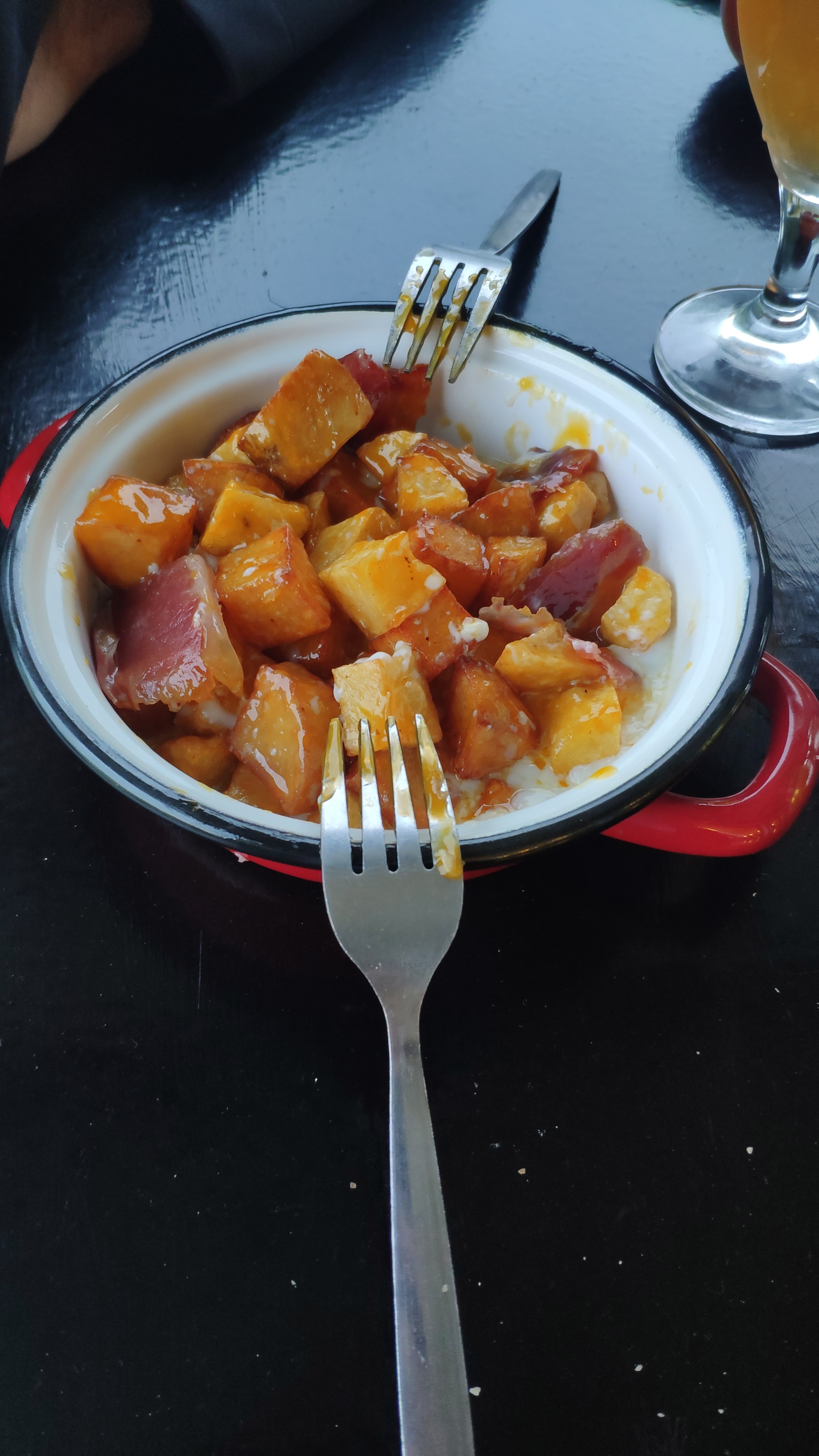 Nous avons très bien manger. Salade lardons en entrée, échine sauce moutarde et pomme de terre rissolées, pour le dessert, le chef nous a servi des bananes grillées au caramel excellentes. Nous reviendrons c'est sûr.