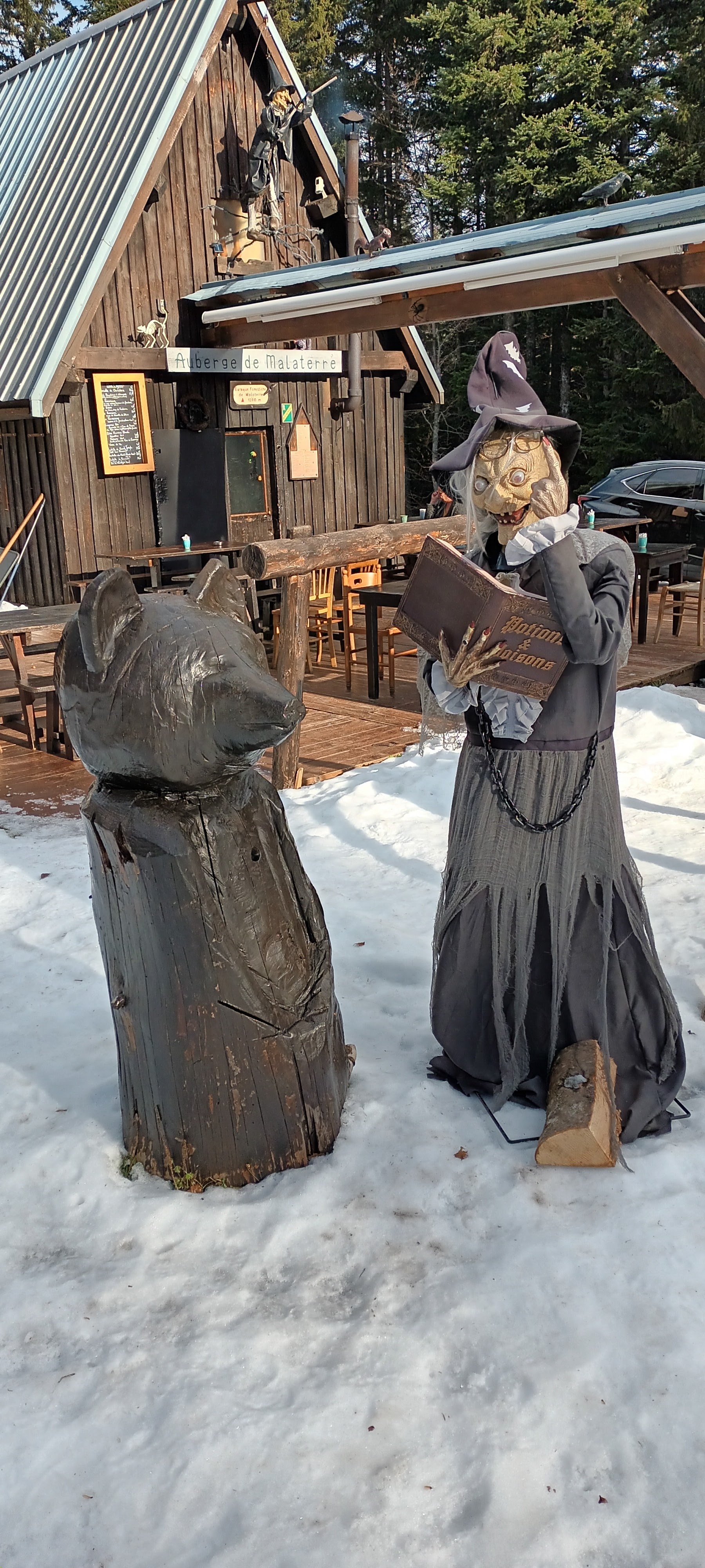 Aujourd'hui quelques kilomètre de marche sur le haut plateau de Corrençon-en-Vercors, histoire de ce dégourdir les jambes. Lorsqu'au détour du chemin nous sommes tombé sur une auberge perdue au beau milieu des bois. Mais oui ! C'est une auberge un peu hors du temps, une auberge de sorcières ! Oui, de sorcières ! Alors rassurer vous, ce sont de gentilles sorcières qui sauront vous régaler de leurs maléfices. Il n'y a pas d'électricité dans ce coin reculé, pas d'eau courante non plus. Il vous faudra vous prémunir de moyen de payement à l'ancienne, soit par chèque soit en monnaie sonnante et trébuchante, pour vous éviter le mauvais sort car il n'y a pas non plus de carte bancaire. Pour rejoindre l'auberge de Malaterre, c'est ainsi qu'elle se nome, il vous faudra emprunter les sentiers des hauts plateaux à pied ou en raquettes, en ski de fond ou en vélo, mais on peut également y accéder en voiture selon la saison et la quantité de neige. Pensez à réserver avant de vous y rendre si vous voulez prendre votre repas : 06.07.87.52.80.