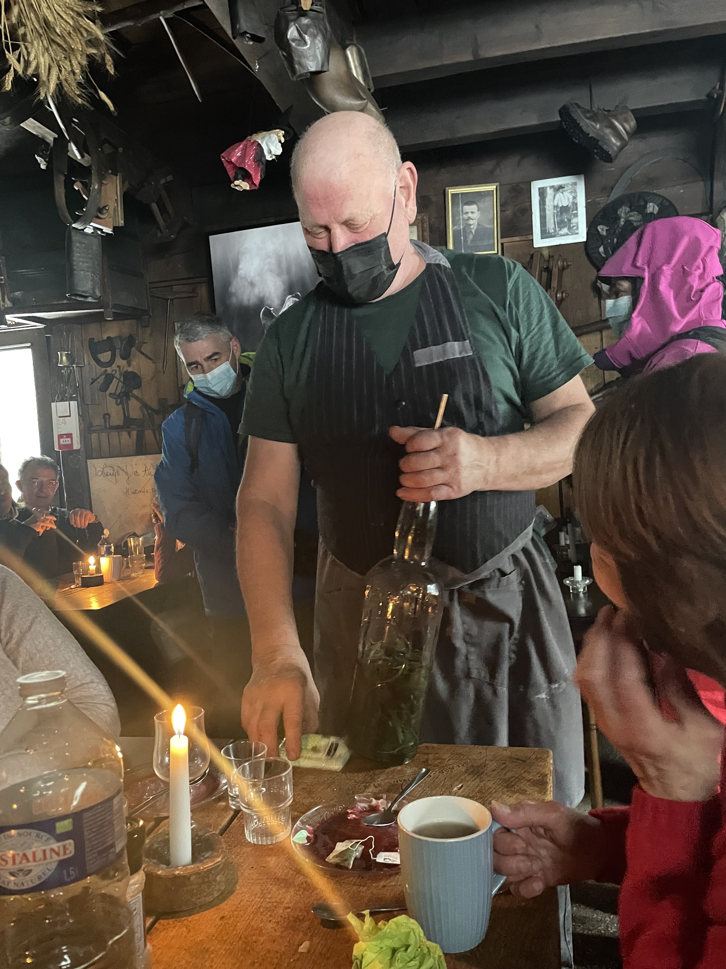Nous avons été charmé par la gentille sorcière de Malaterre qui nous a conté une légende des 4 montagnes tous les convives étaient ravis de cet intermède inattendu. Le repas était à la hauteur de nos attentes et la liqueur du crapaud de notre hôte nous a donné des ailes pour repartir sur les chemins de montagne. Une auberge à voir à écouter à goûter ...