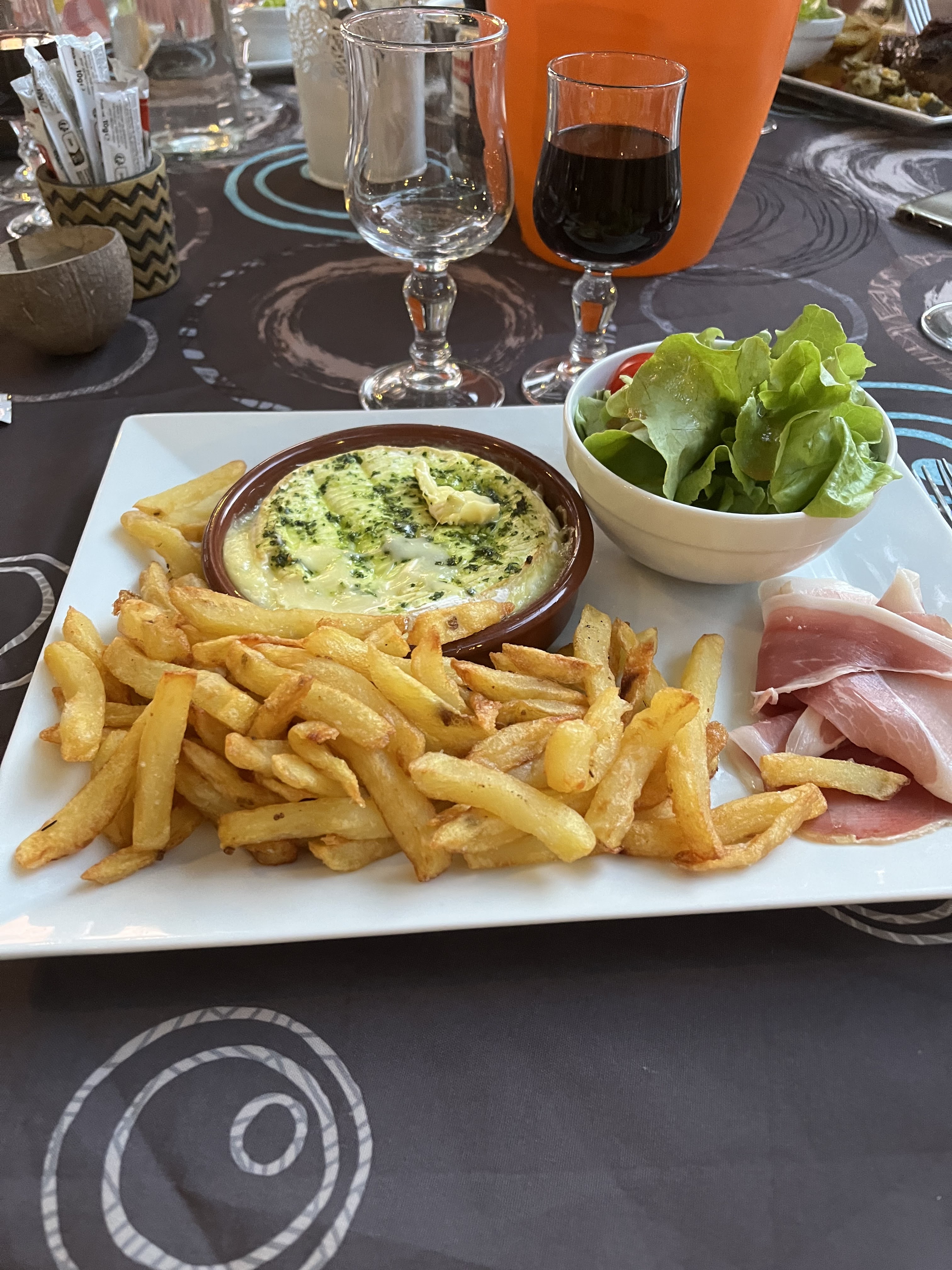 Nous avons mangé le camenbert rôti hier soir .C'était excellent avec un dessert café gourmand c'etait super 👍