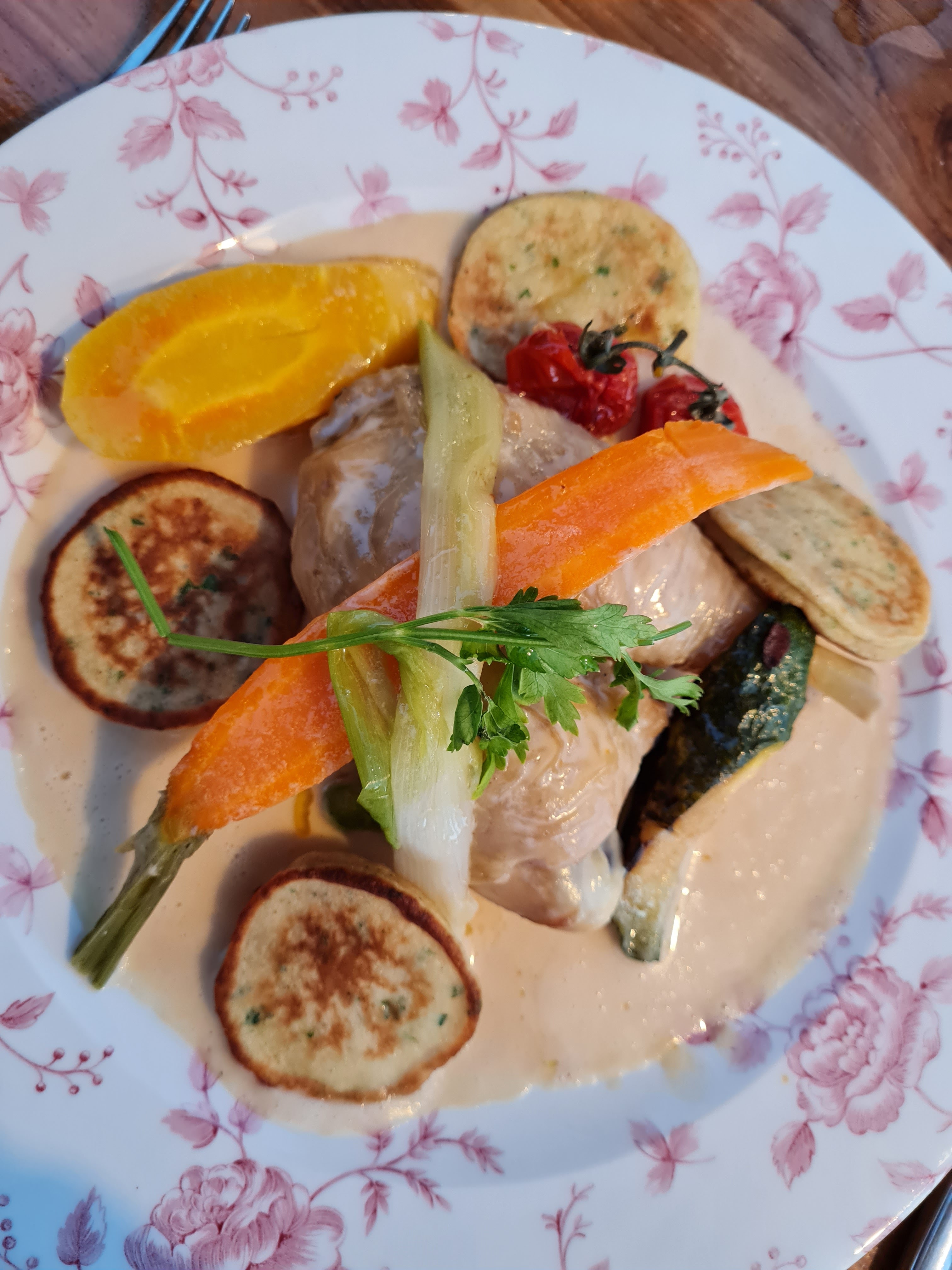 Auberge très agréable, service efficace, courtois et gentil. Ce qu'il y a dans l'assiette ??? Très bien, bien cuisiné, très belle présentation. Un petit amuse-bouche au foie gras pour faire patienter.... Aux dires de mon mari, excellentes grenouilles ! Mon poulet aux morilles très bon et bien servi, hum !!! La sauce crème et morilles (et pas 2 morilles qui se cachent sous les morceaux...😋). L'addition tout à fait correcte. De quoi se plaint-on ??? Non seulement de rien mais on félicite !!!