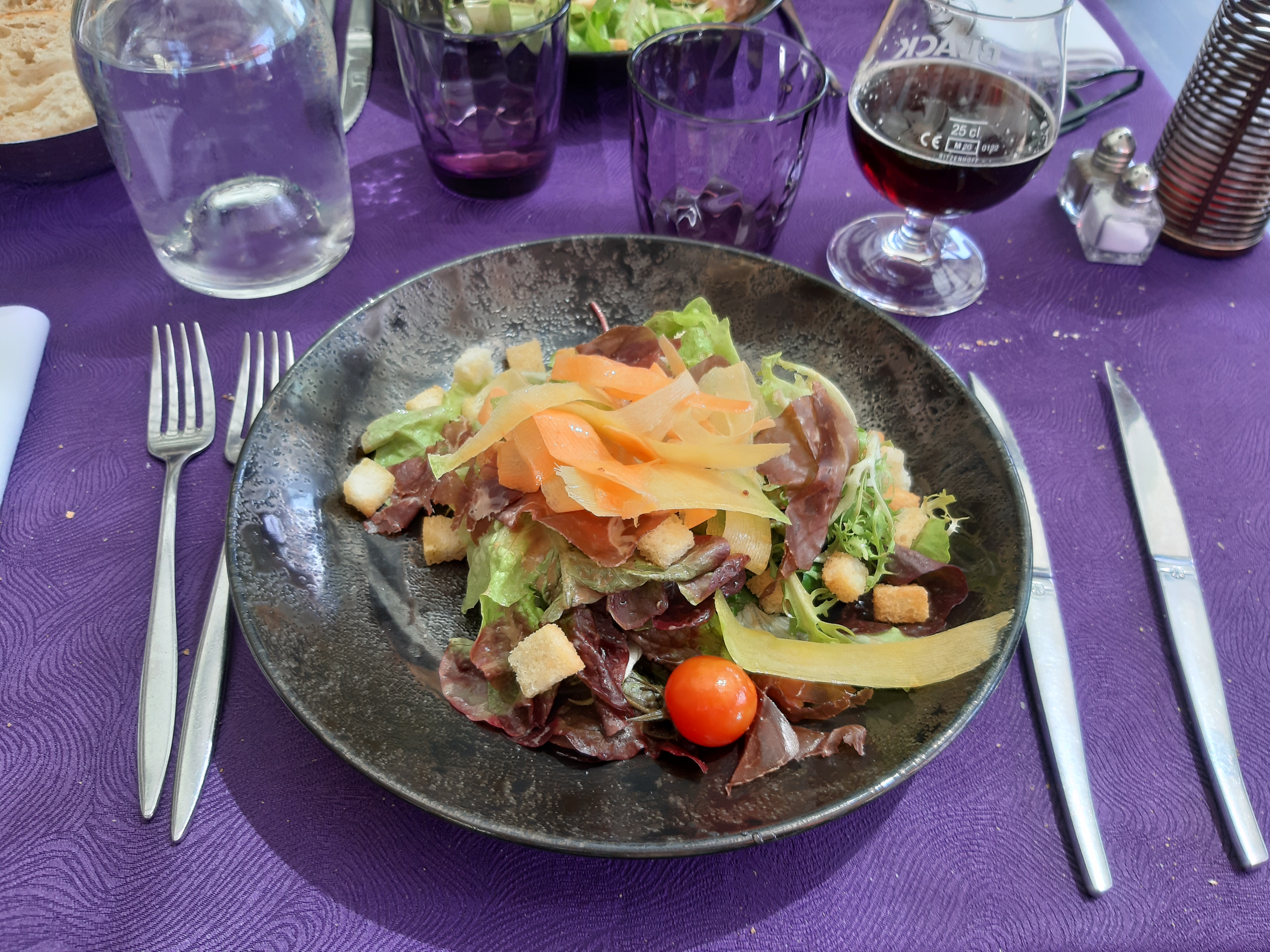 Bien, belle présentation, qualité de service correct (manque de tenues), plat bon et beau. Carte de vin structurée. Abords de l'auberge, non entretenus, c'est anormal, crepi degradé, parking aléatoire et en terre. Un effort est à faire pour monter en gamme.