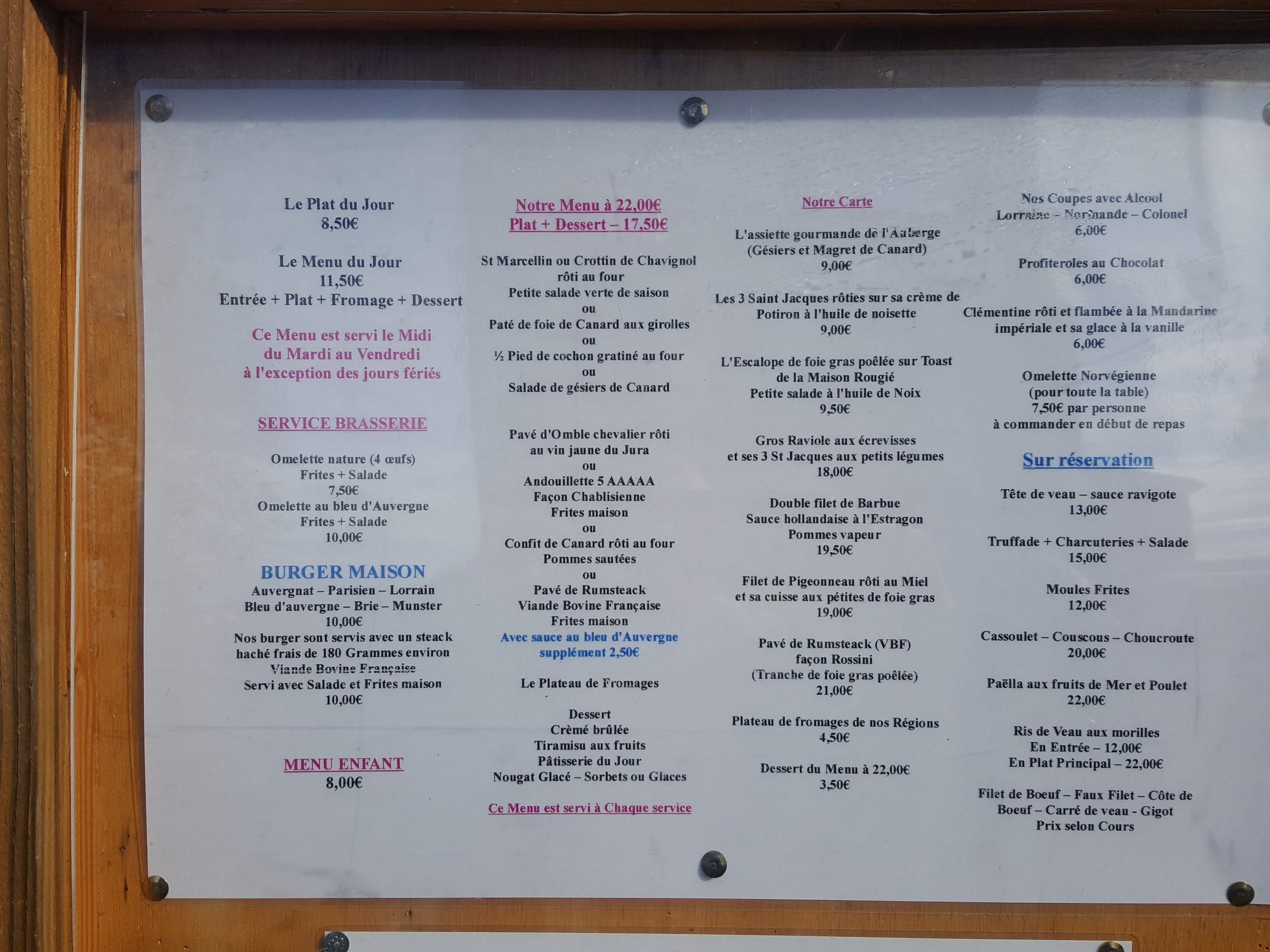 Nous avons été très bien reçu avec le repas très bon. Le seul bémol, c'est le menu de l'auberge à 35€. Le tarif n'était pas affiché. On aurait pu le demander, effectivement. Mais 35€, ça me paraît un peu cher par nos campagnes. Ça donne pas envie dit retourner