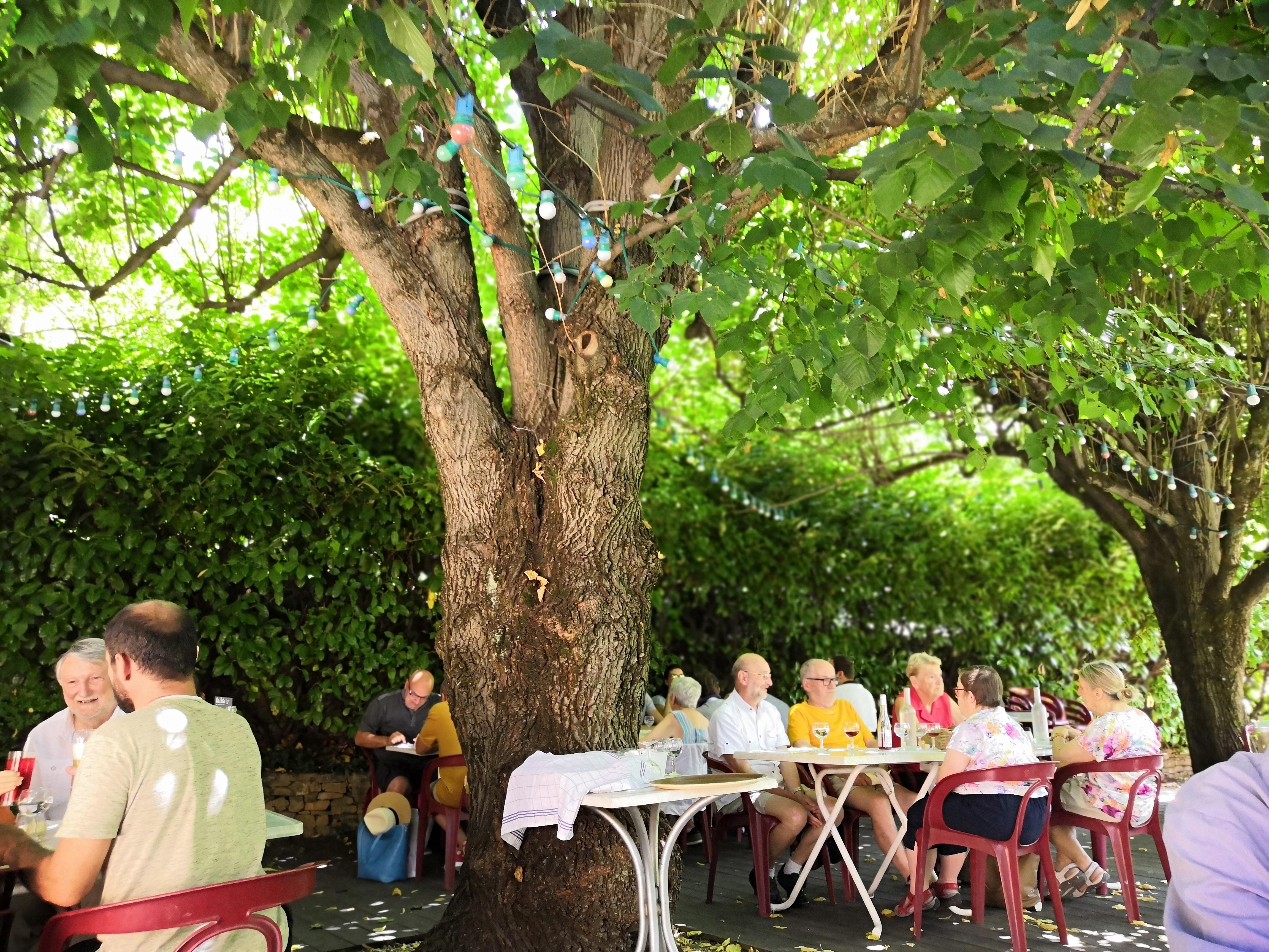 Terrasse ombragée très agréable pour l ete très bon repas de l entree au dessert