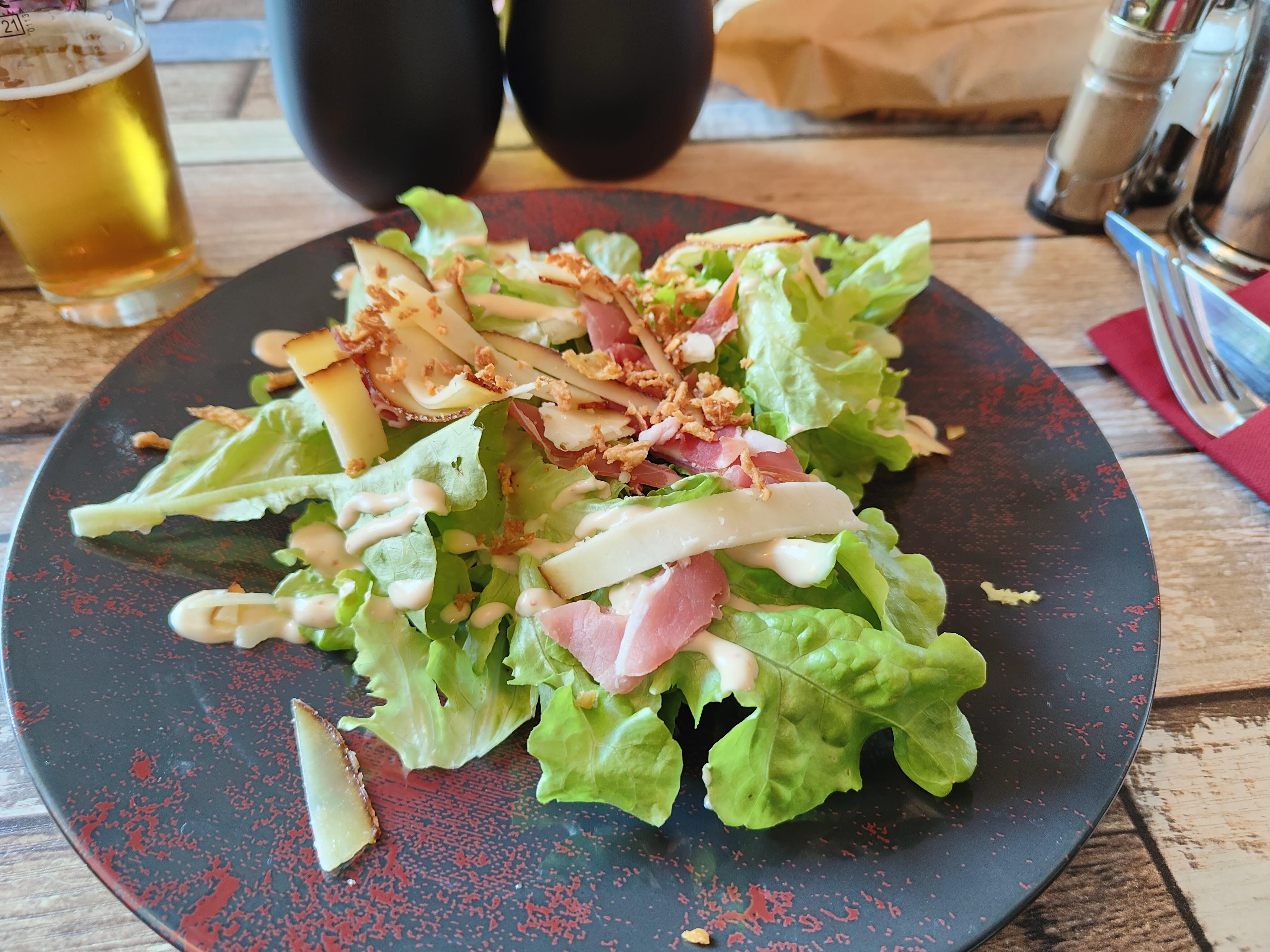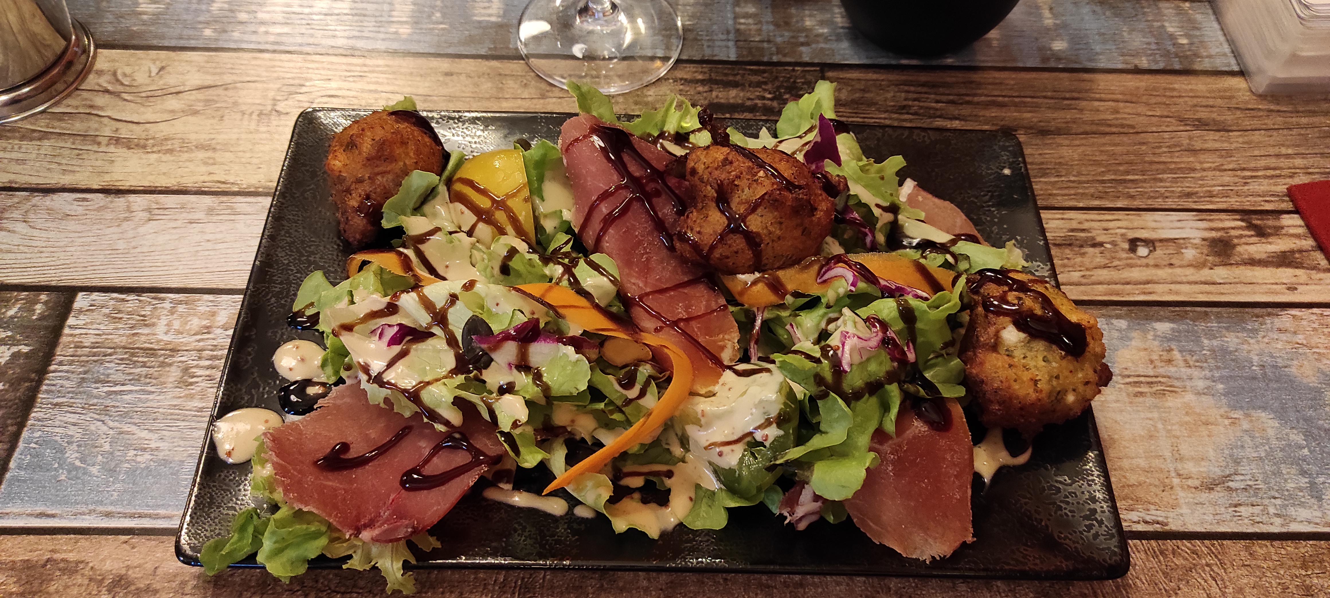 Très bonne salade aveyronnaise , immense et prix très raisonnable. Nous étions une grande table de 17 personnes, ils ont assuré pour le service ! Bravo 👏