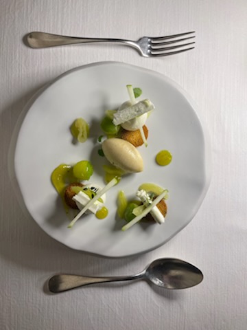 Invités par des amis, (table de 9 ), nous avons passé une excellente soirée rythmée par le défilé des 5 plats ( et vins ) merveilleusement présentés et préparés par une équipe en cuisine ( et pâtisserie …!) au top… Les explications et le service en salle étant à l’avenant, tout a contribué à nous faire passer une magnifique soirée… (Ça sent bon l’⭐️…!)
