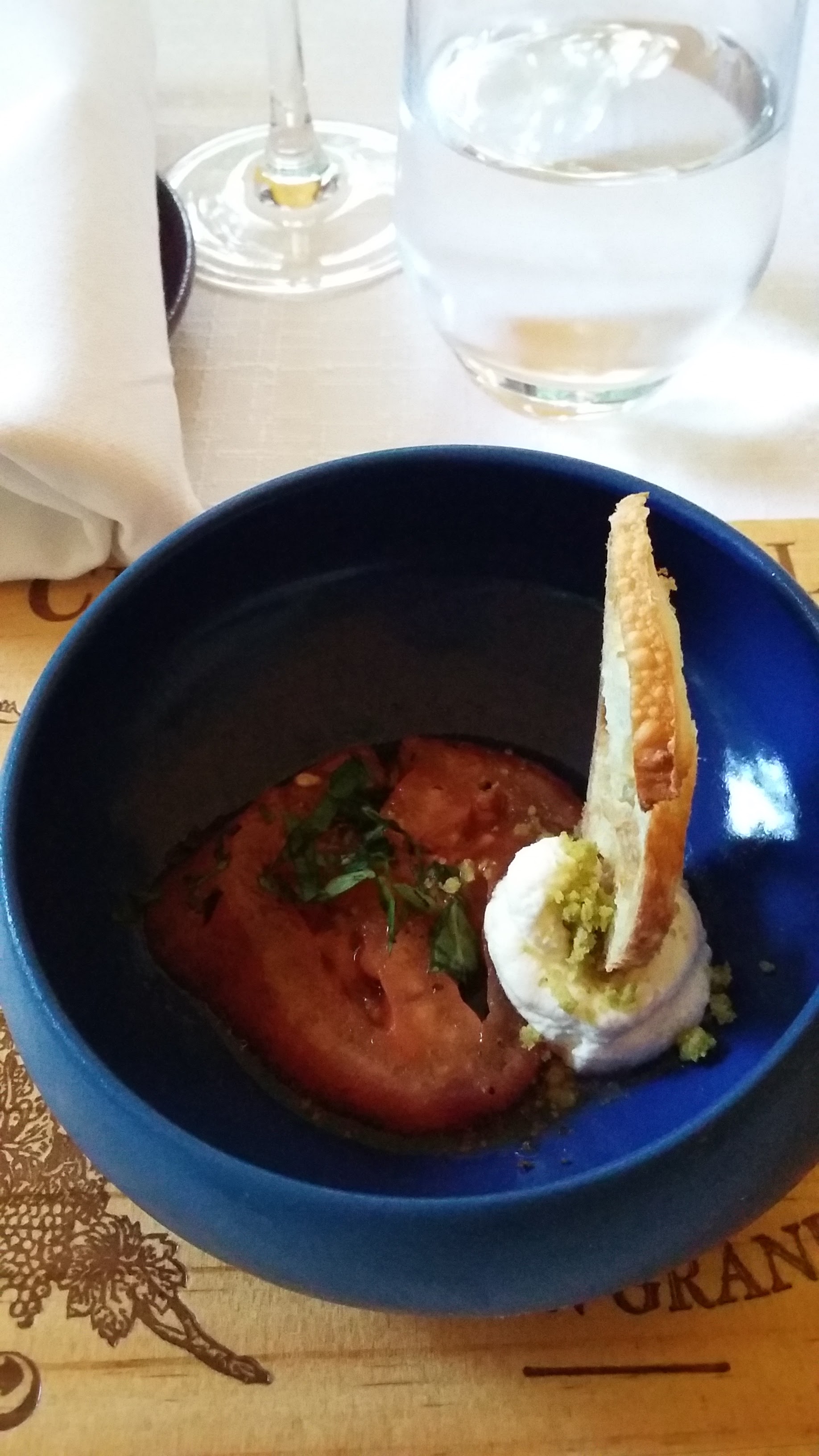 Nous avons opté pour le menu du soir à 60 € (5 plats) plutôt que 50 € pour 4 plats. Comme d'autres critiques l'ont mentionné, il n'y avait pas de frais supplémentaires cachés. Au contraire, il y avait quelques dégustateurs supplémentaires inclus entre les cours auxquels nous ne nous attendions pas. Service agréable, cadre agréable. Il y avait quelques accords d'aliments forts et doux que j'ai trouvés plutôt étranges - en particulier la burrata avec une riche réduction de tomates et une vinaigrette balsamique. C'est presque assez étrange pour réduire la note à 4 étoiles, mais pas tout à fait. Tout était aussi délicieux qu'on pourrait s'y attendre à ce niveau de prix et les portions étaient généreuses. Les deux derniers plats ont été un peu difficiles : si nous y retournons, nous mangerons moins de pain !