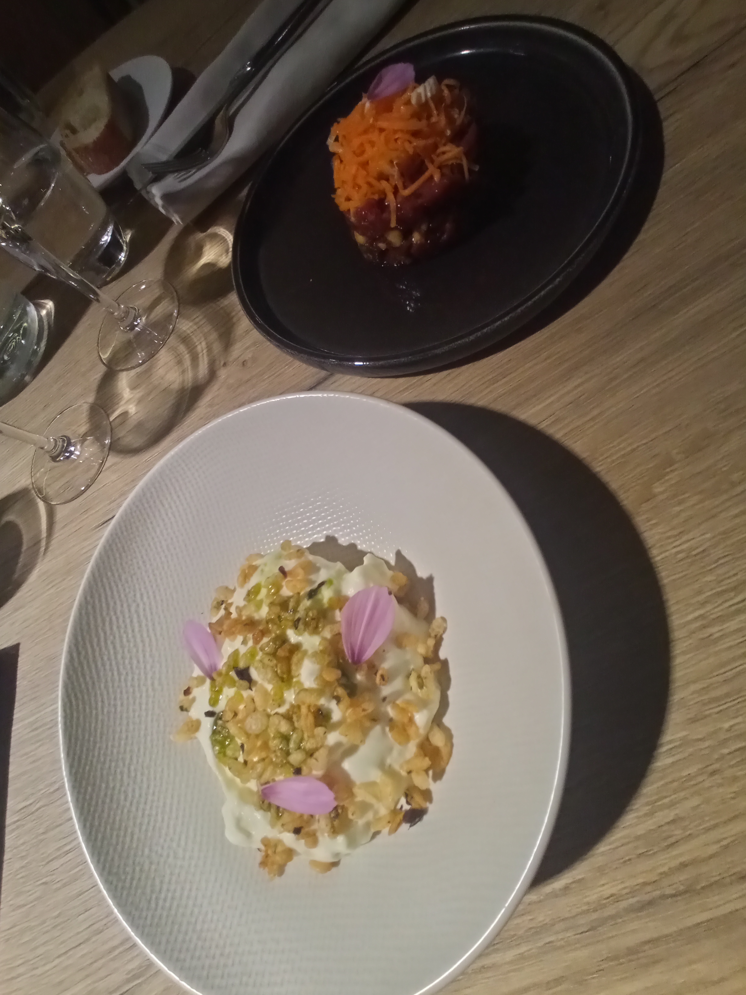 Lieu élégant et chaleureux, chaque plat était aussi beau que bon et chose encore trop rare de nos jours, il y a un véritable menu végétarien gastronomique, bravo ! Et merci pour votre accueil chaleureux