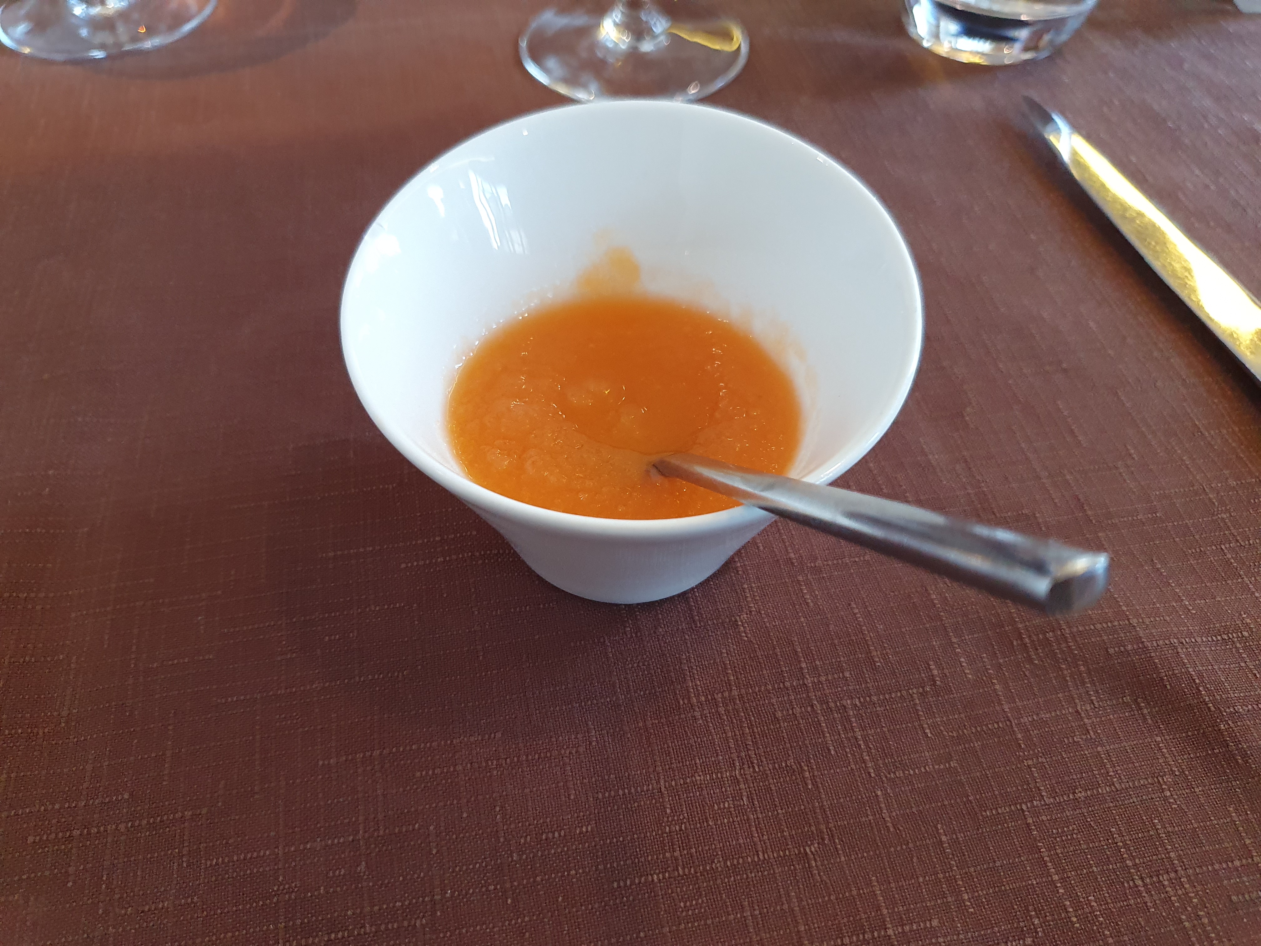 Entrée servie avant la mise en bouche Talon du bloc de foie gras servi dans une assiette avec un peu de chutney d oignon rouge Fade comme présentation pour un resto gastro.... Toasts froids Signalé au serveur Aller retour avec le même toast pas plus chaud.... Un serveur s est démarqué Sympathique et avenant Apparemment d autres clients ont eu la meme sensation en discutant à l hôtel....