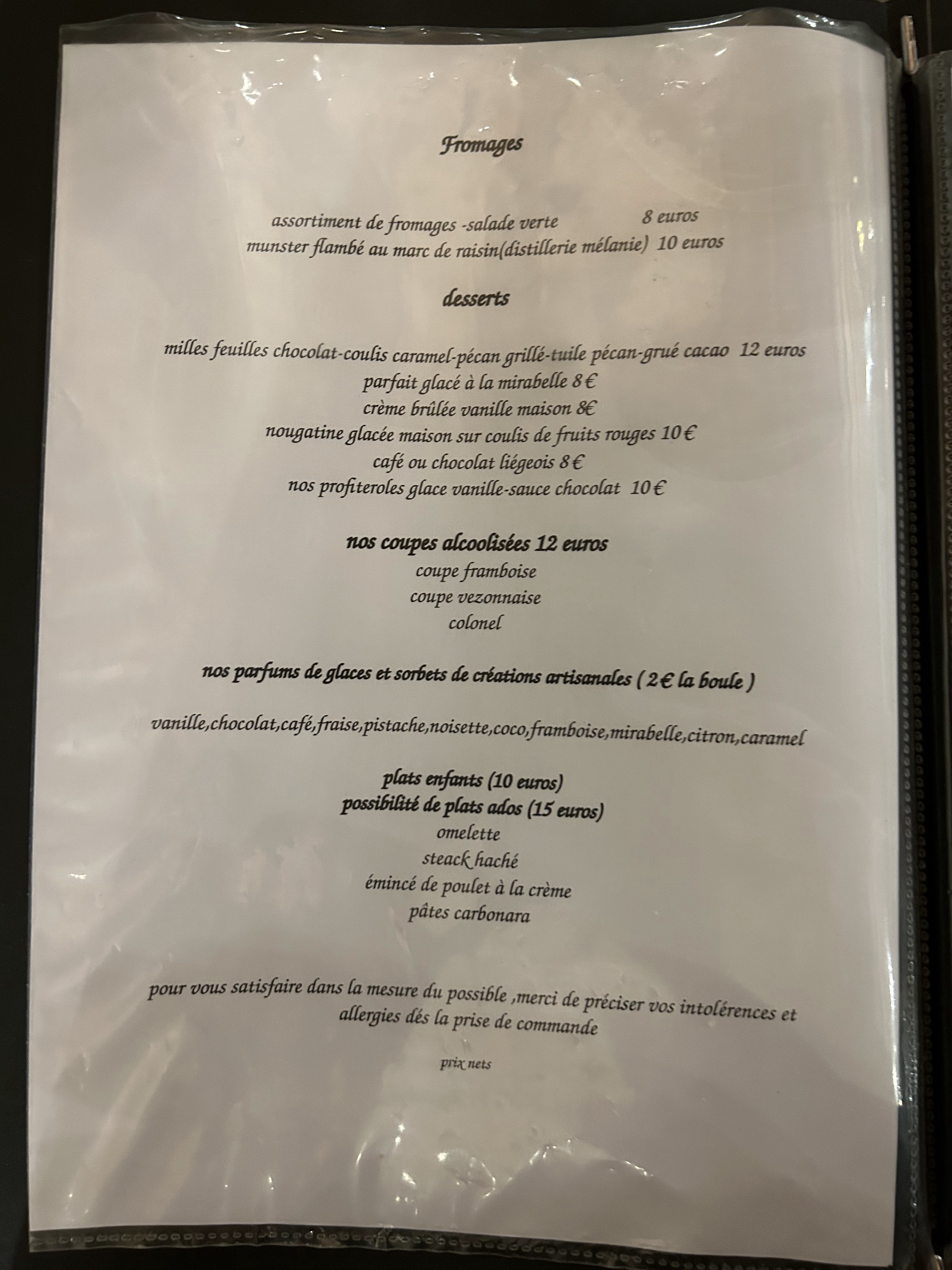 Restaurant découvert grâce à des amis, en route vers le marché de Noël de Metz. La cuisine est excellente (produits frais et cuisinés maison) et l'accueil est très sympathique. Mention spéciale pour le mille-feuilles, qu'il faut goûter absolument si vous vous y rendez.