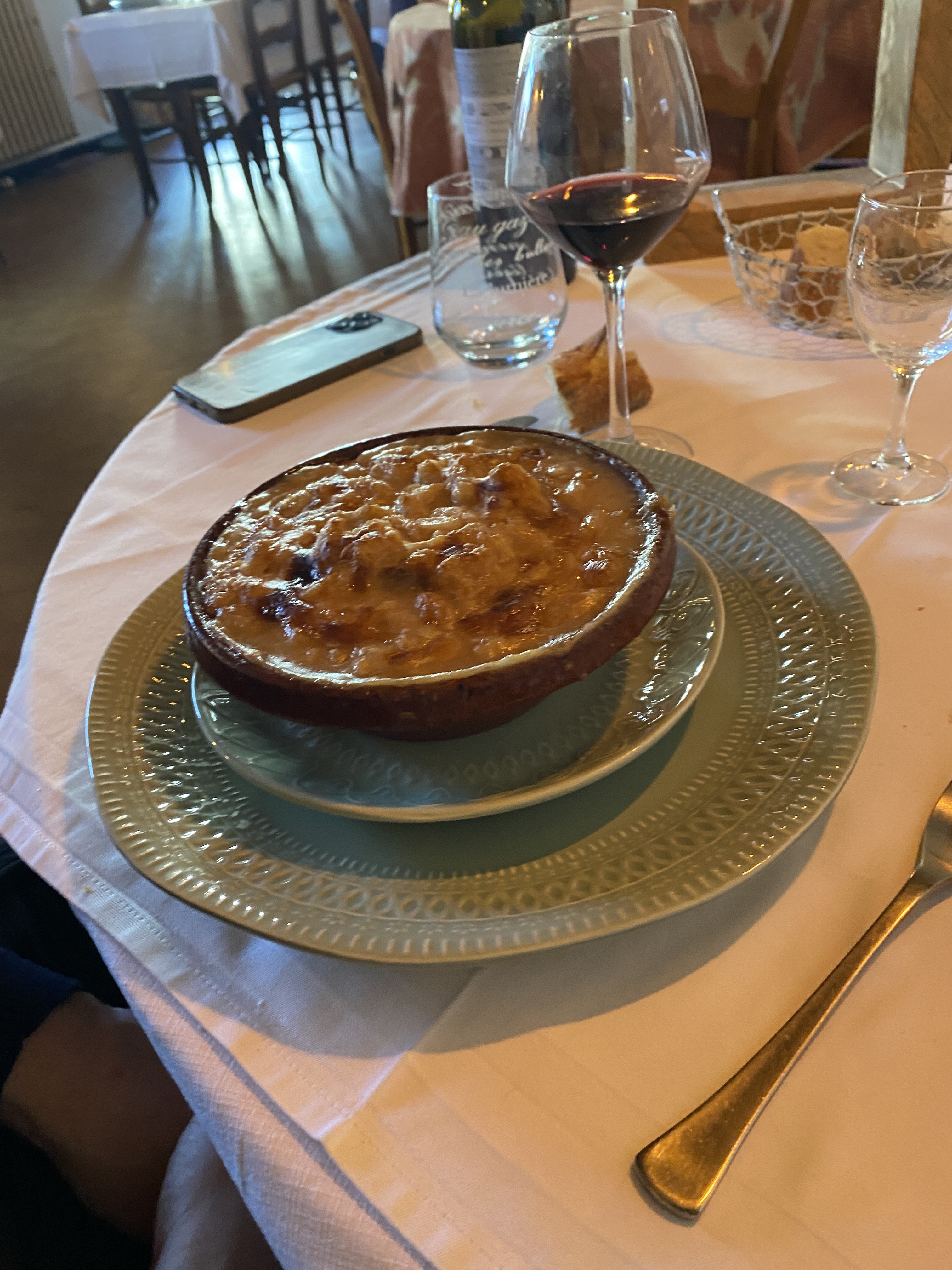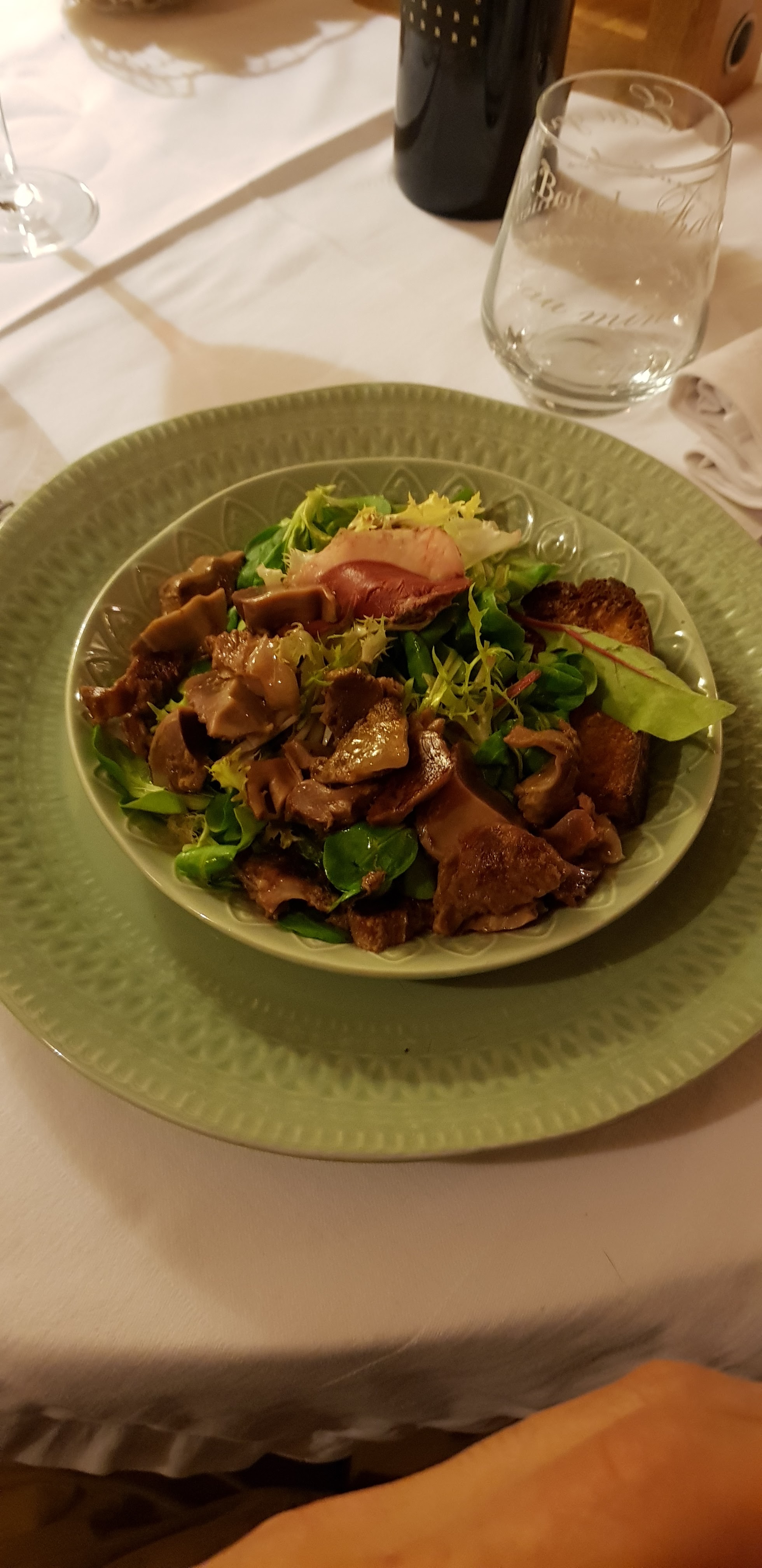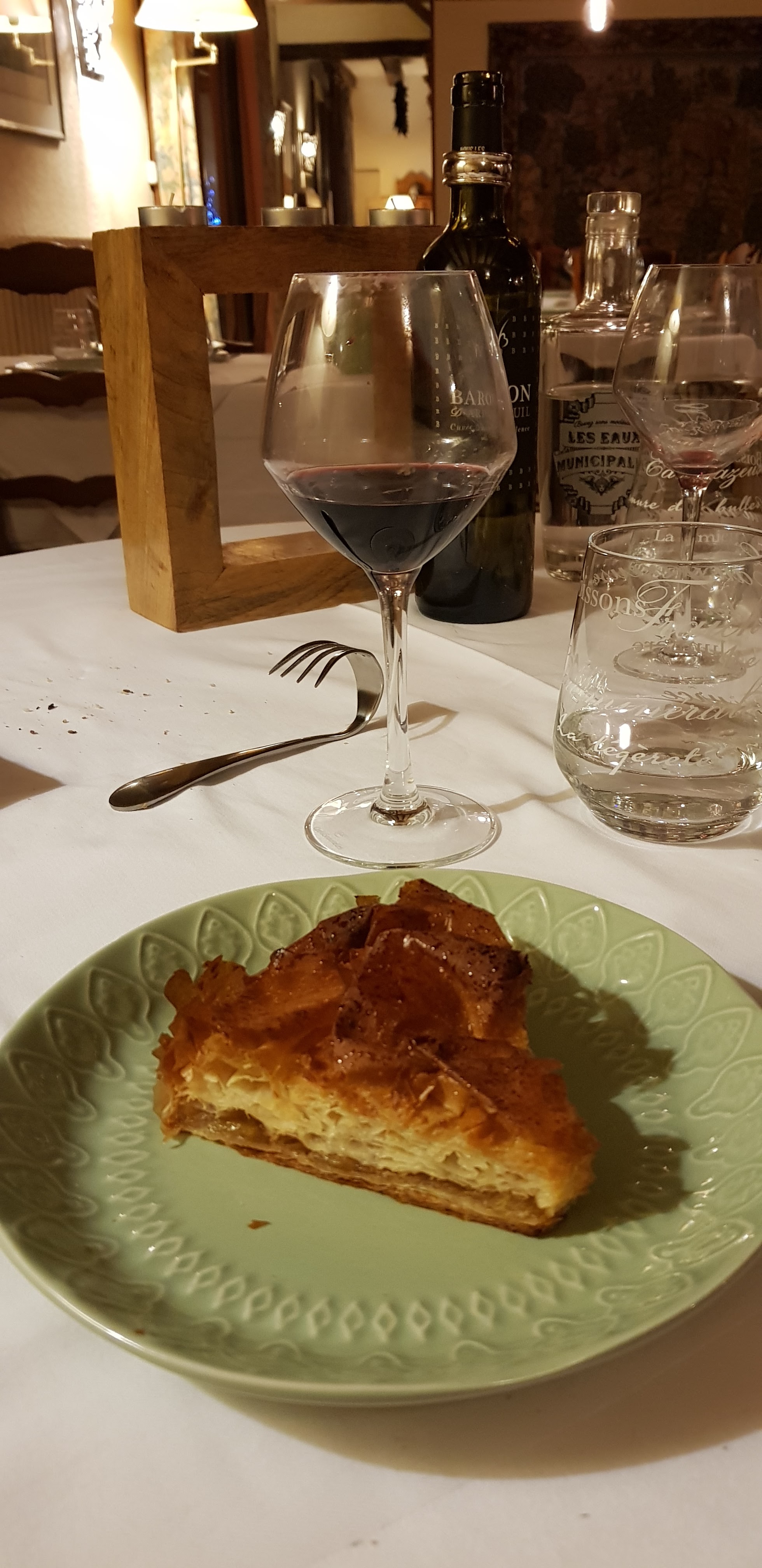 Nous avons pris une Lentillage au confit , un équilibre ni trop gras , ni trop salé un délice . Les proportions sont parfaite Pour l'accompagnement nous avons demandé de l'aide, j'ai préféré un vin plus fort en tanin un Madiran ,il était excellent ,mon compagnon n'aimant pas trop le vin rouge il a aimé Puis une Croustade Gersoise et un Cocktail Mogaro ( Glace nougat ,Chocolat ,Orange et liqueur ) Un dîner Excellent