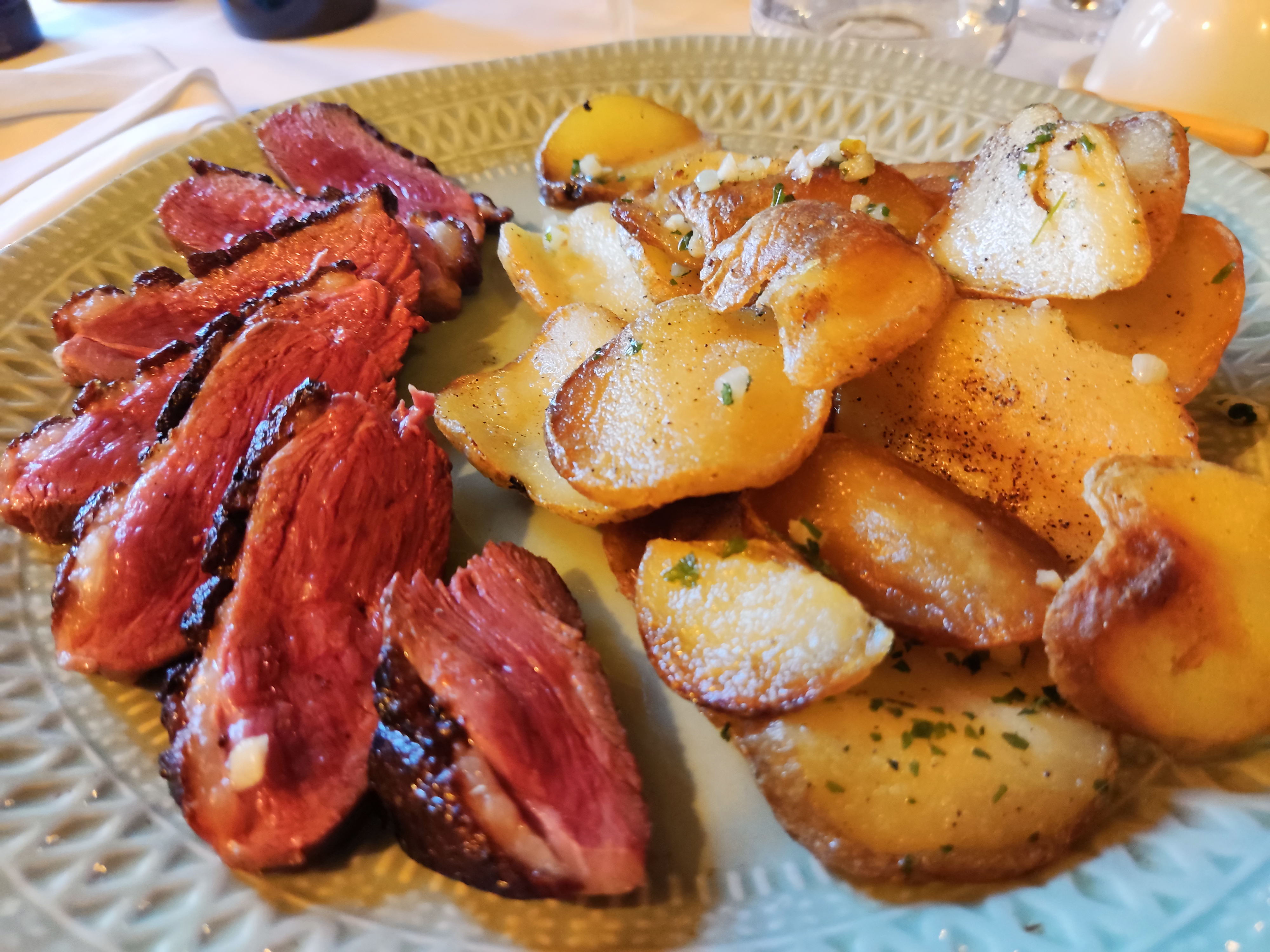 Un repas qui fait du bien! Des produits du terroir délicieux. Personnellement au delà du confit qui est exquis, je me régale avec les pommes de terres en accompagnement... Quand au magret de canard grillé c'est le meilleur que j'ai pu manger! La salle est agréable dans une ambiance calme où l'on se sent comme chez soi. Le service est convivial.