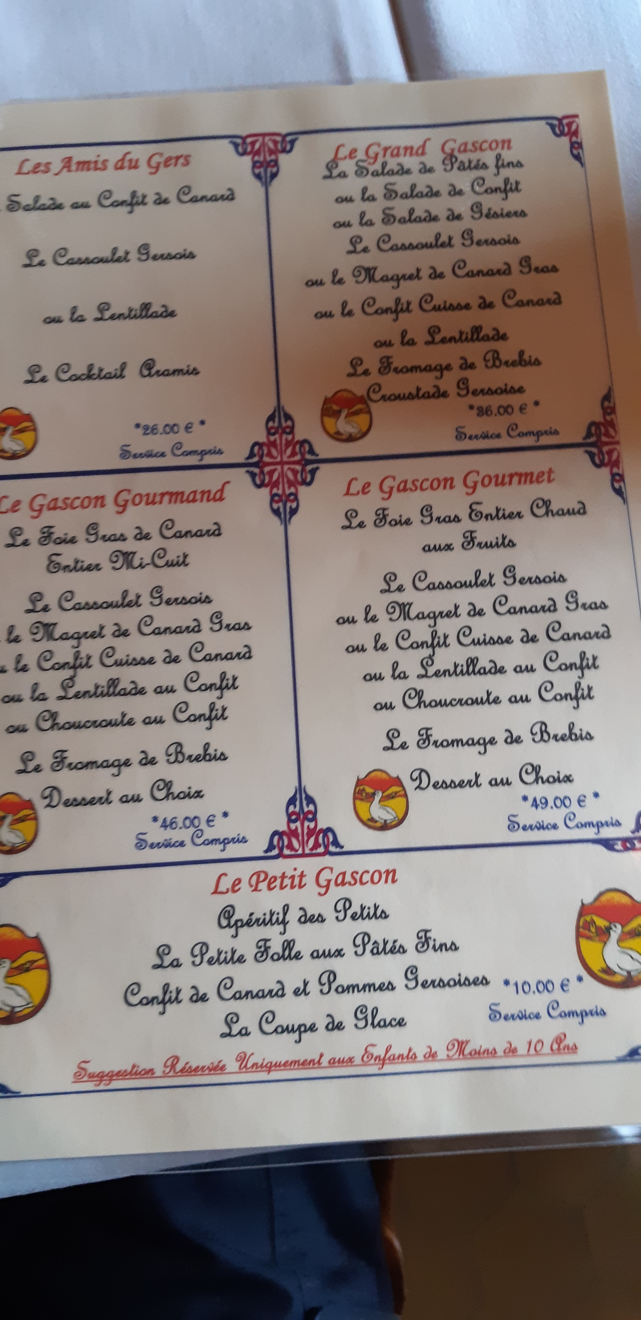 Tout est bon dans le canard... Lol Le patron est adorable, le service est parfait, et la cuisine du Gers on ne peut meilleure, confit de canard avec pommes de terre aillés, croustade, mousquet, bref un vrai regal.... Enfin une bonne table à decouvrir. Le lieu est à l'image des restaurants gersois. Merci pour cet excellent moment... Nous y reviendront c'est sur. Chantal et jean Yves