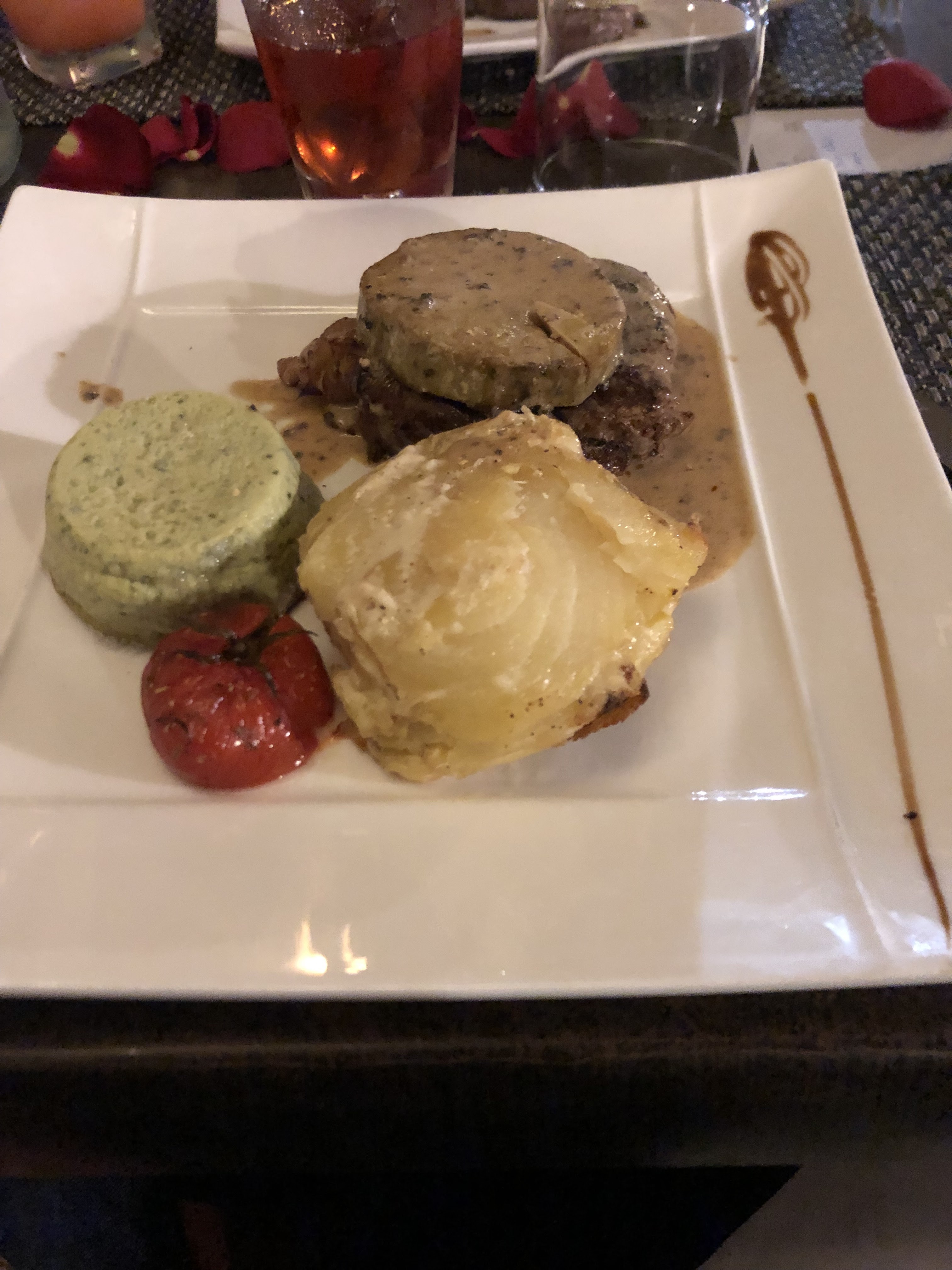 Pour les personnes qui aiment la viande c'est très bien, prévoir plus de garniture avec la viande. Pour le plat végétarien un peu léger il aurait fallu plus de légumes pour plus de saveurs. Sinon le fondant au chocolat est une pure merveille et le service au top. On se sent bien dans ce restaurant