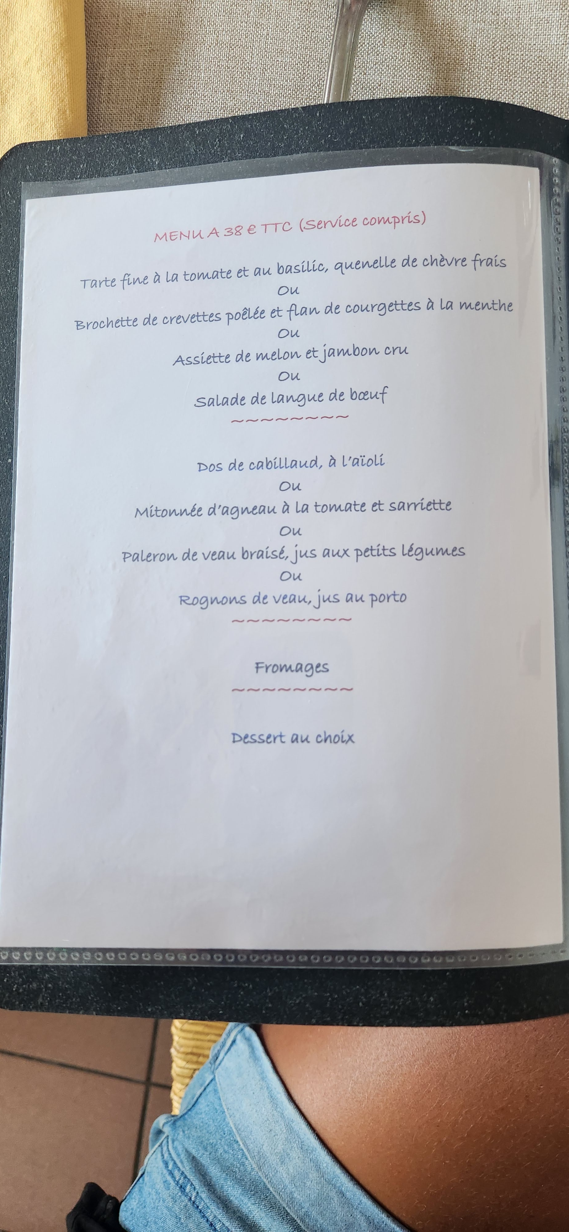 3 menus aux choix, pris menu à 38 euros, quelque peu déçu, m'attendait à mieux, le menu à 26 euros aurait fait l'affaire