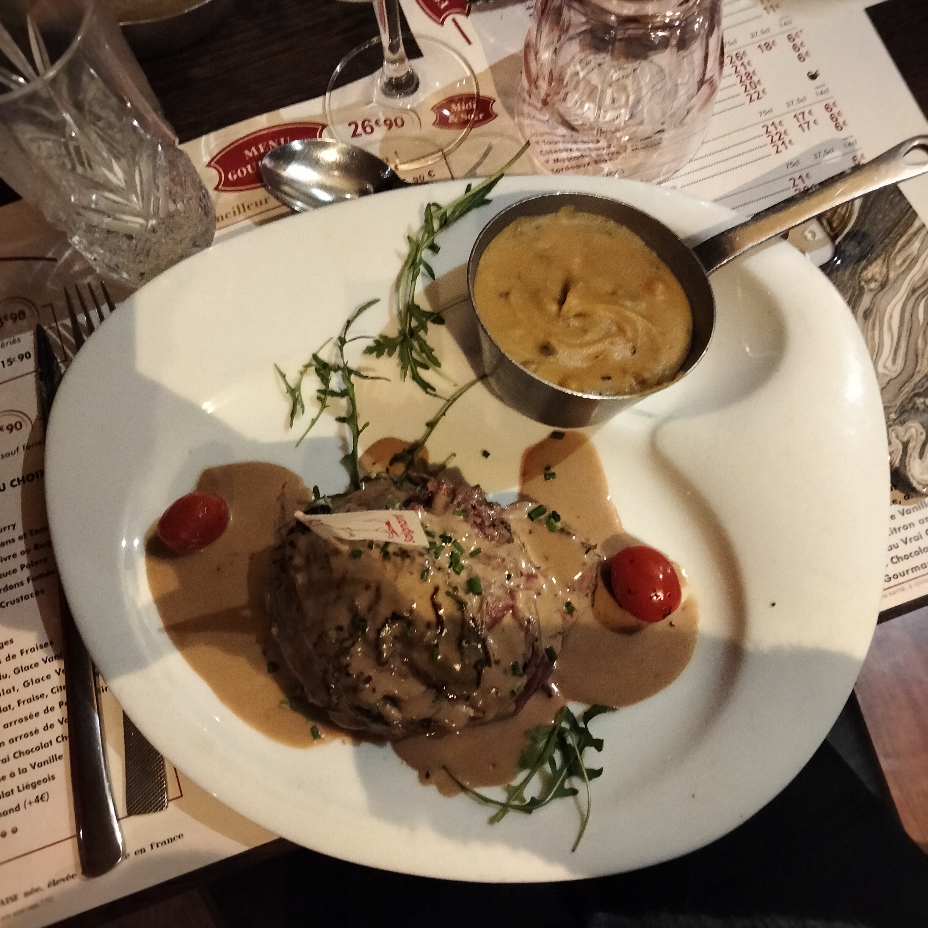 Dîner en amoureux parfait. Une viande très très tendre. Service impeccable.