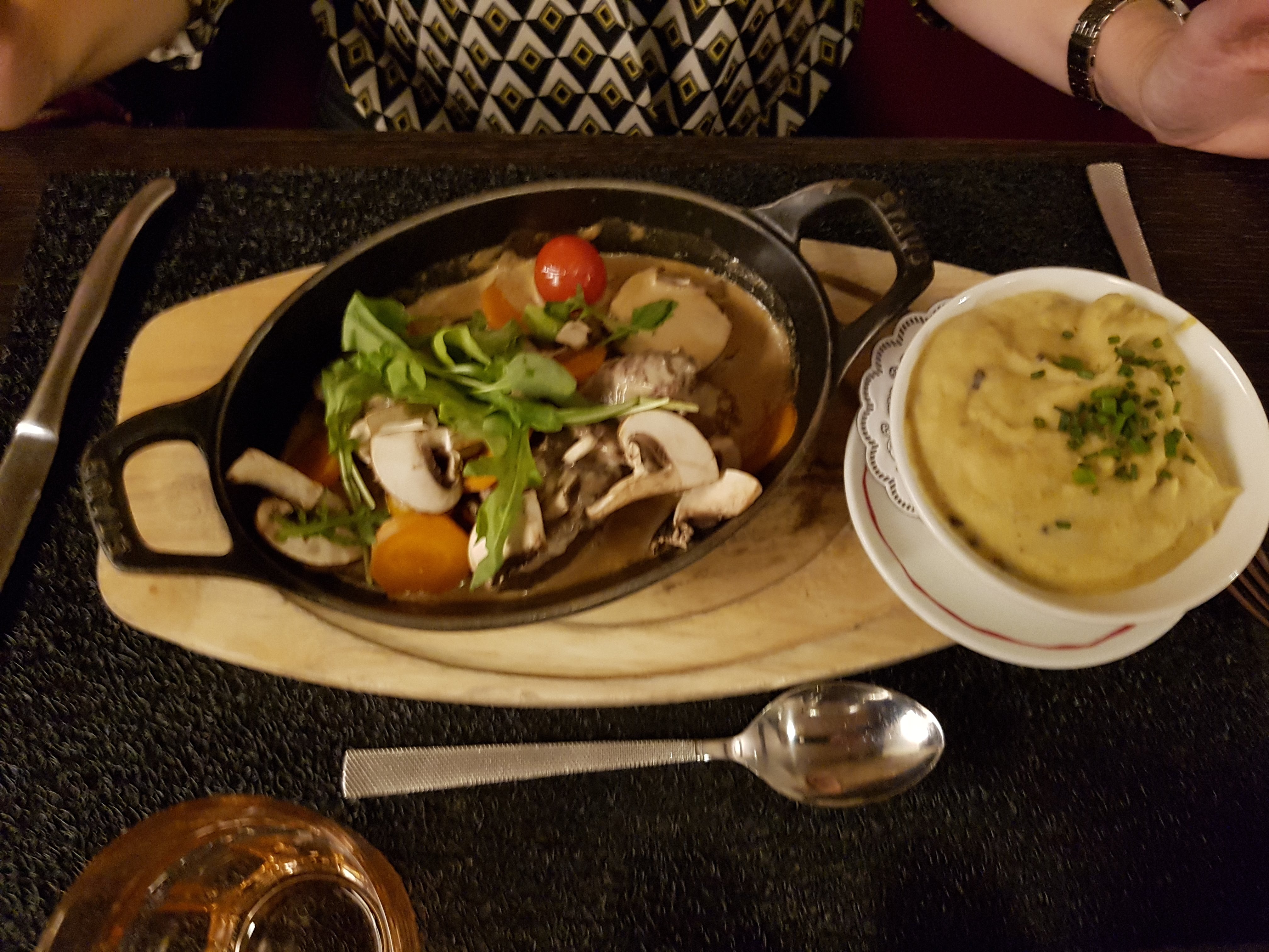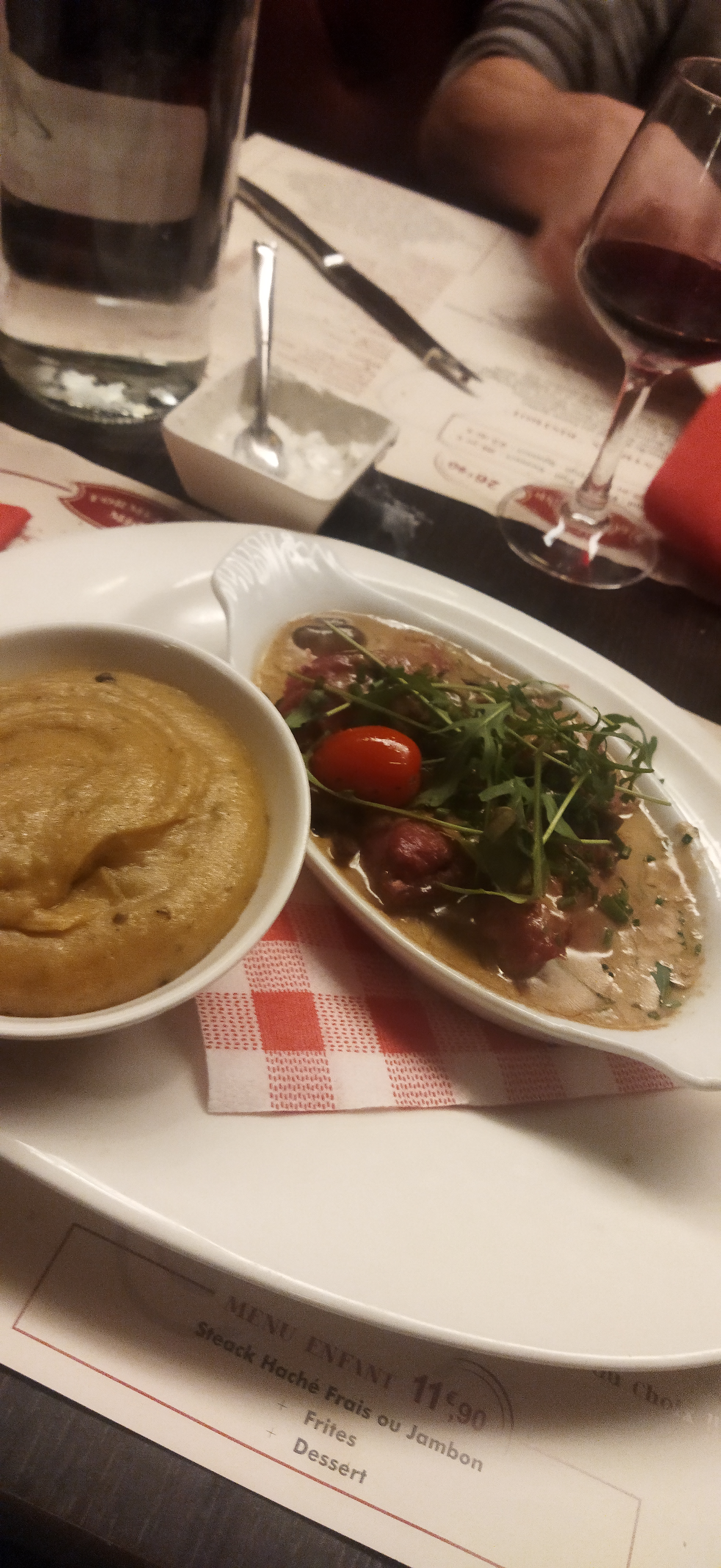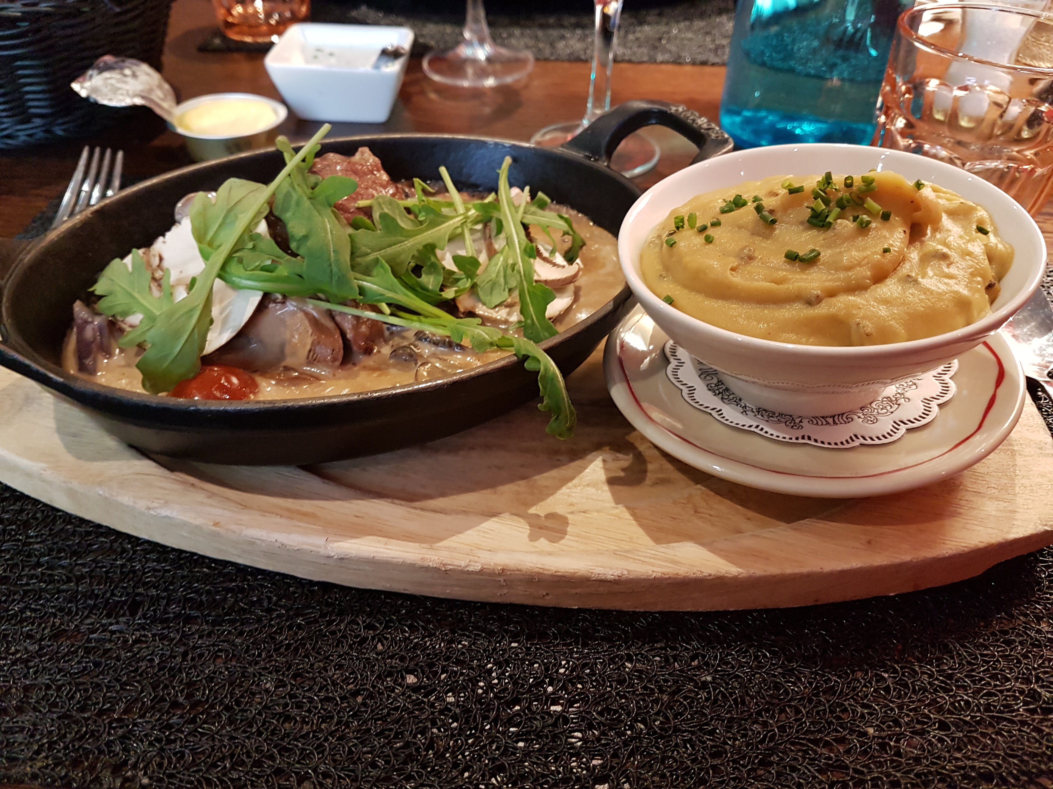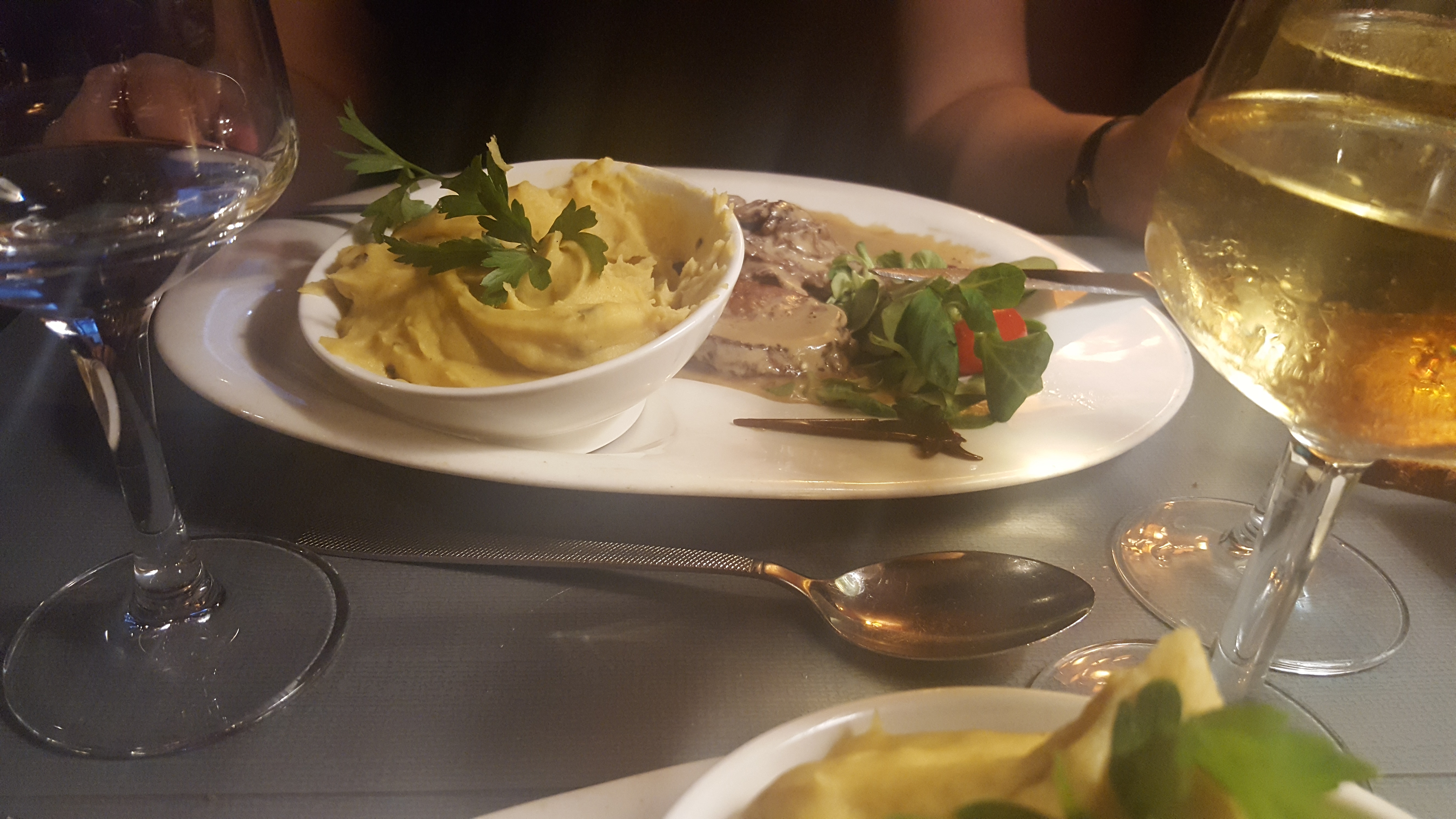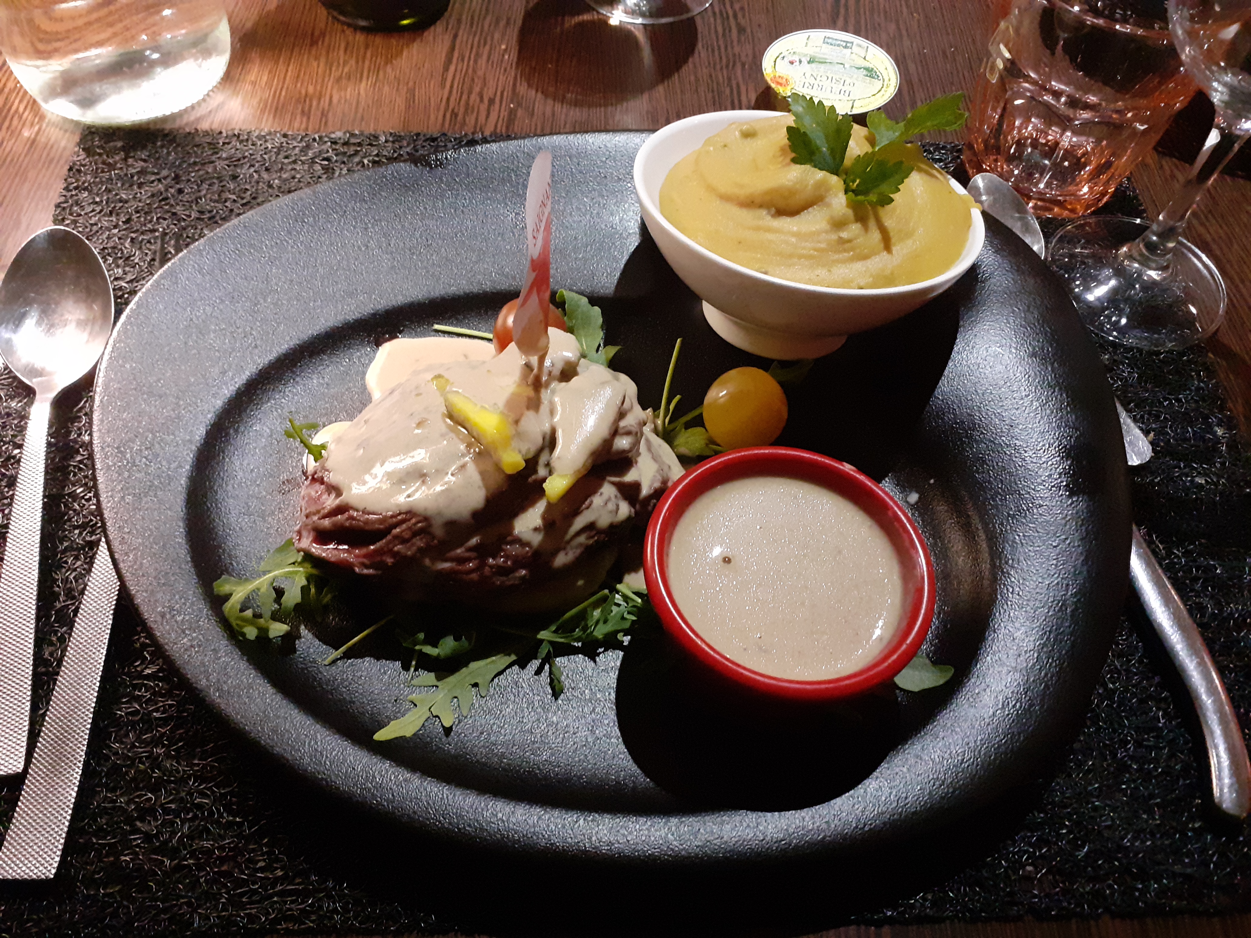 Les plats sont biens maîtrisés, la découpe facon carpaccio de la piece de boeuf et très originale, la purée de pomme de terre aux champignons et aussi très bonne, Attention à bien spécifier qu elle contient des champignons sur la carte. Je recommande à 100% ce restaurant