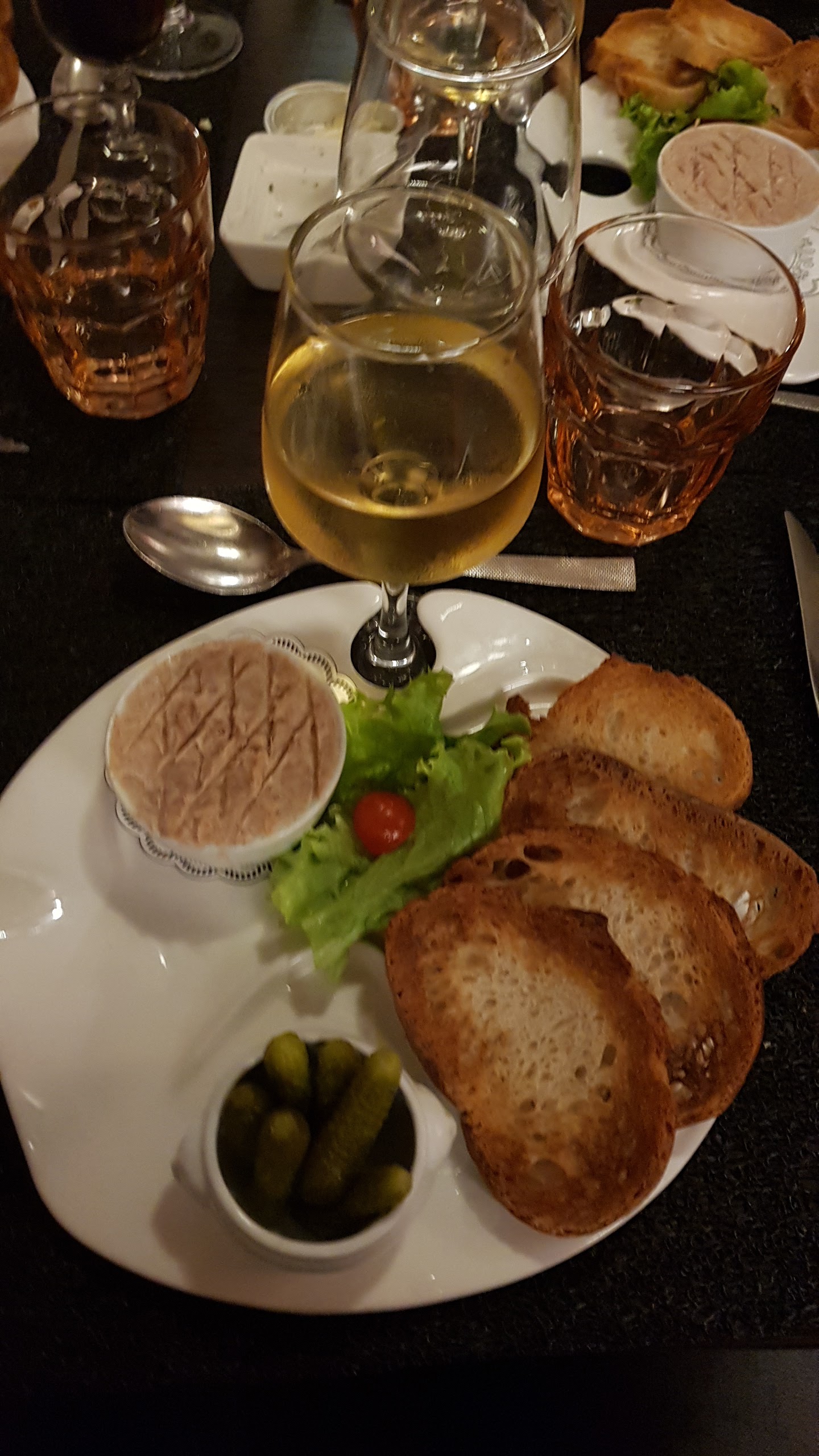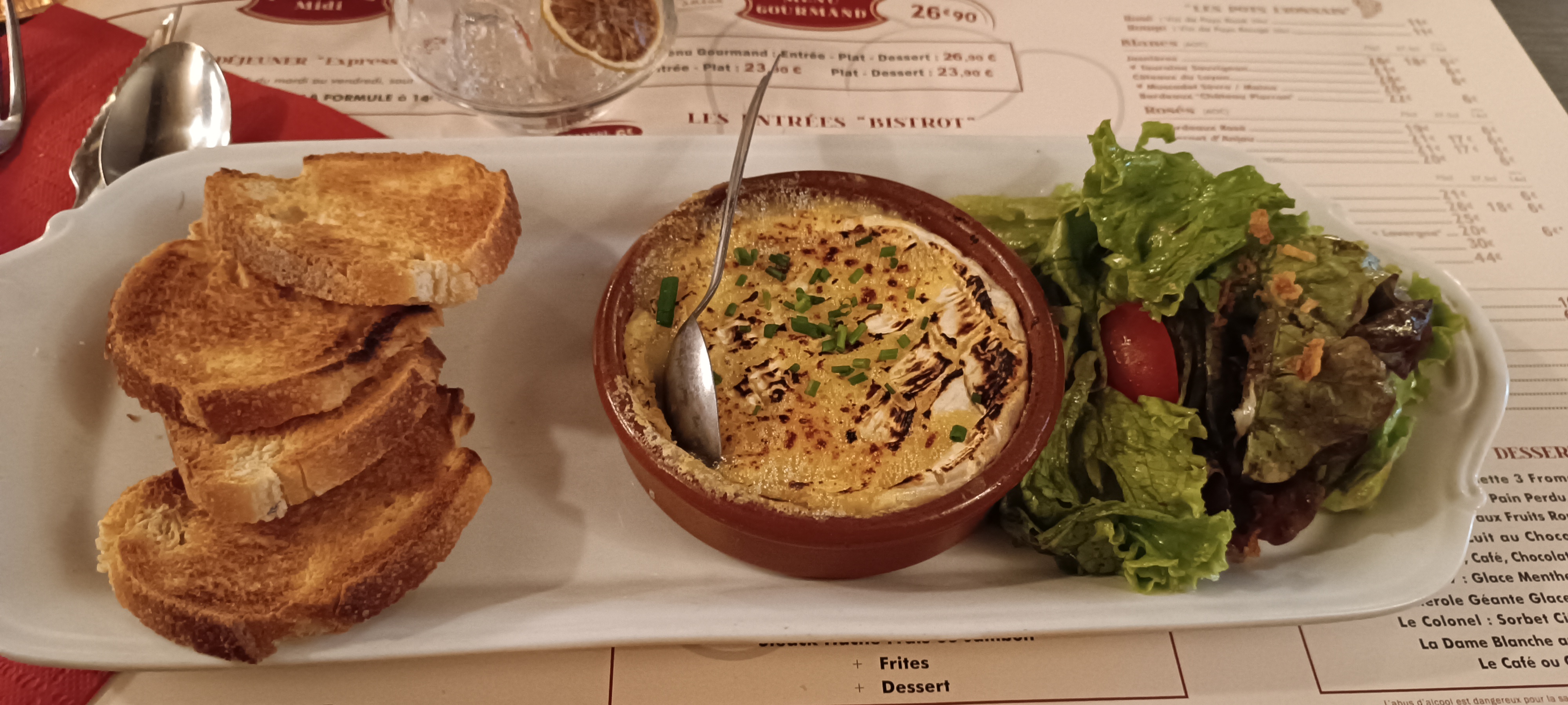 Nous avons eu la salade, l'œuf confit, le pastet et le camamber en entrée. C'étaient bons mais pas les meilleurs pour moi. Mais toujours super bon et français. Le steak était également bon. Le poulet au curry était super crémeux. Mais pour moi, le meilleur et le plus étonnant étaient les joues de porc et le pain perdu brioché ❤️. La purée qui accompagne les joues de porc était incroyable. L'ambiance et le service étaient merveilleux. Je recommanderais de prendre le plat + dessert. Je recommande vivement la brioche.