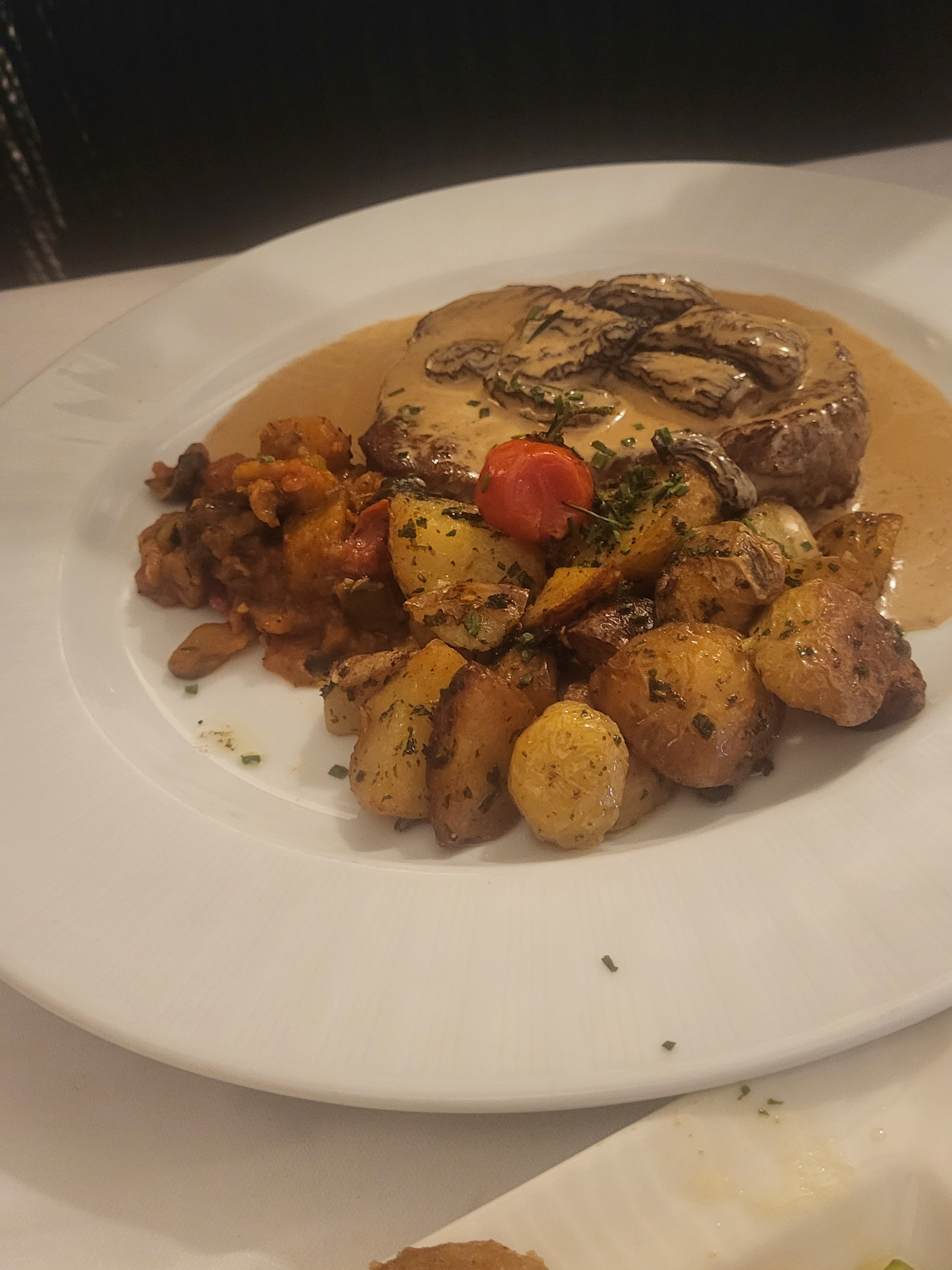 Accueil excellent, les plats magnifiques,le service au top ,et un musicien également pour nous accompagner durant la soirée. Le restaurant mérite ces 5 étoiles . À recommander sans modération.