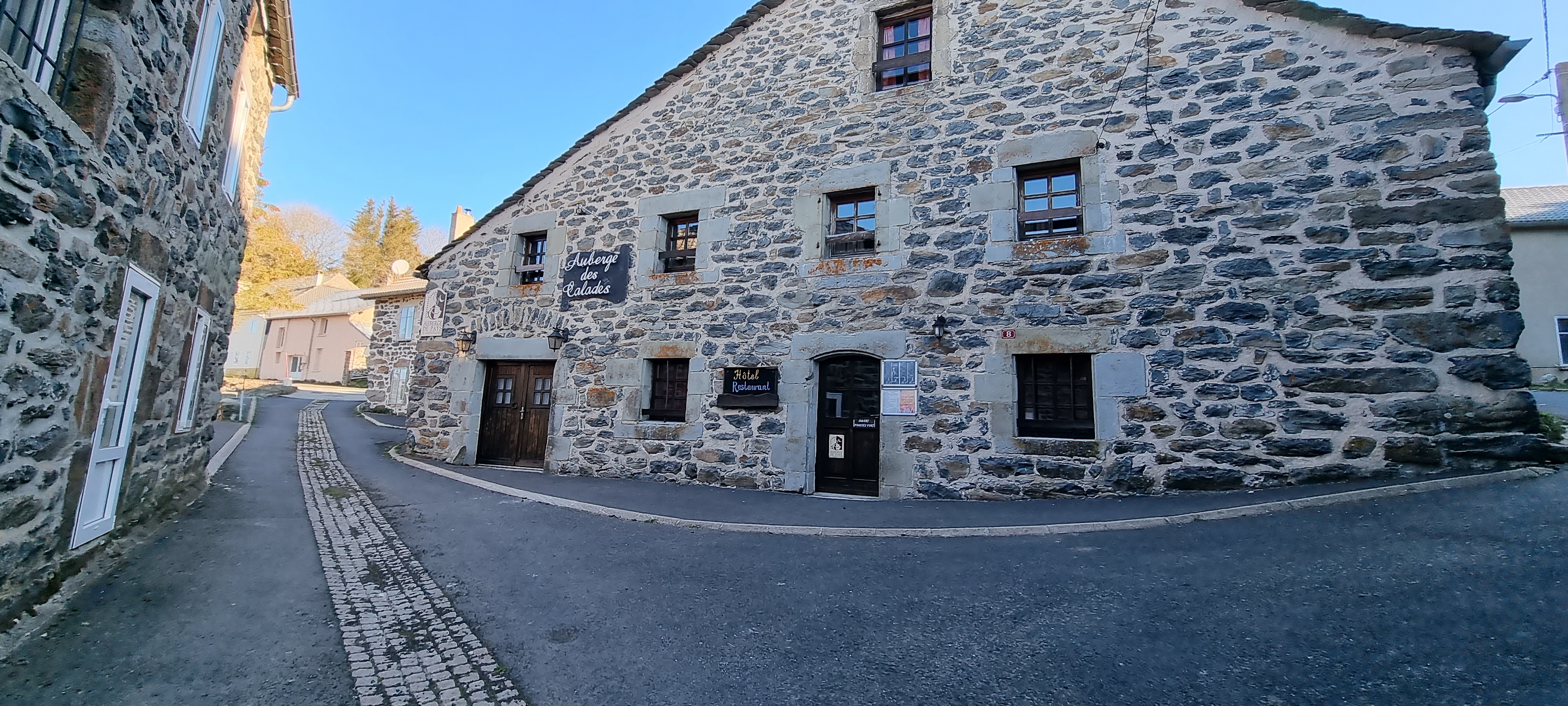 L'auberge des calades séduit tout de suite. Des chambres coquettes et toutes différentes où le bois et la pierre règnent en maitres. Elles allient à la fois confort d'aujourd'hui au charme d'antan : portes de placard rustique, grande cheminée et poêle à bois (décoratifs car il y a un chauffage moderne) et épais murs de pierre. Le calme qui règne ici est impressionnant, la rue est très tranquille et le silence n'est troublé que par les hirondelles et , à 8h, par les cloches de l'église. Les hôtes prennent soin de vous et convivialité, ici, n'est pas un vain mot. Si vous êtes en demi-pension, vous avez fait le (très) bon choix.La cuisine de l'auberge repose sur des produits locaux utilisés pour concocter de délicieux plats, inventifs et aux saveurs surprenantes. Et de superbes randonnées au départ du village... Osez cette plongée hors du temps à la rencontre des vraies auberges.