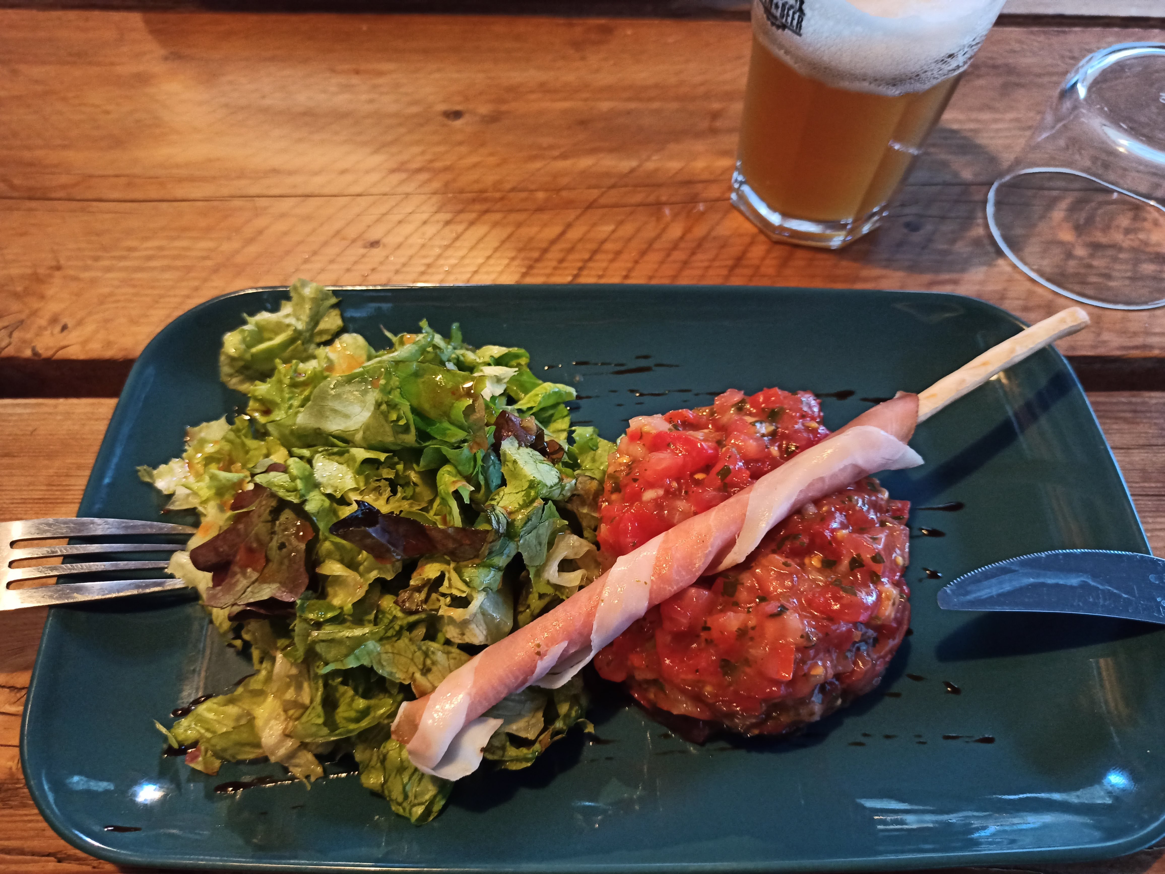 Nous avons dégusté ce steak très savoureux sous le charme d'une ambiance rustique Le personnel très sympa et accueillant Une expérience à réessayer et que nous recommandons