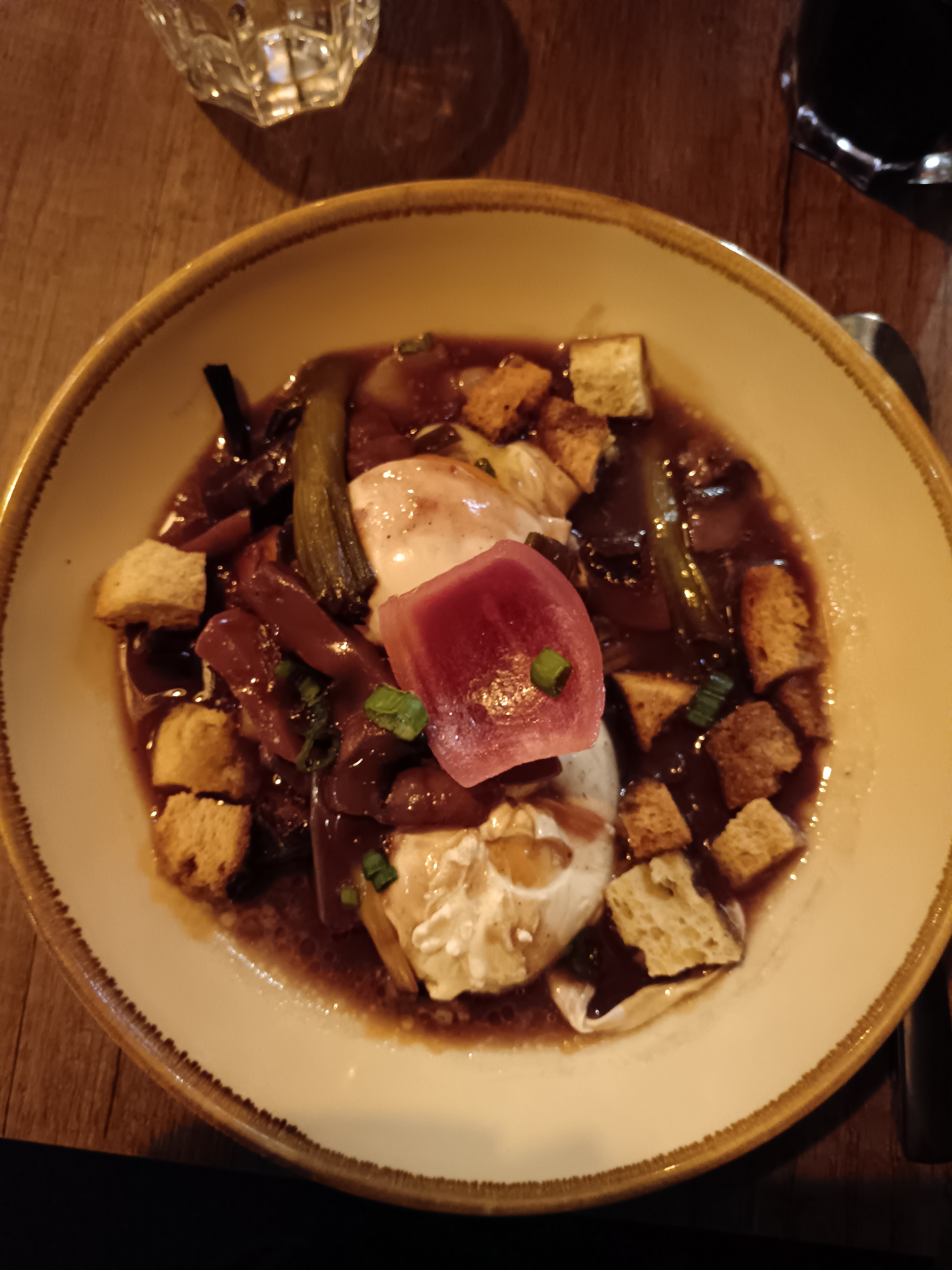 Bon restaurant situé au cœur du vieux Lyon ! Point bonus pour les oeufs en entrée (1ere photo) qui était trop trop bon, j’y repense encore, l’eau à la bouche !
