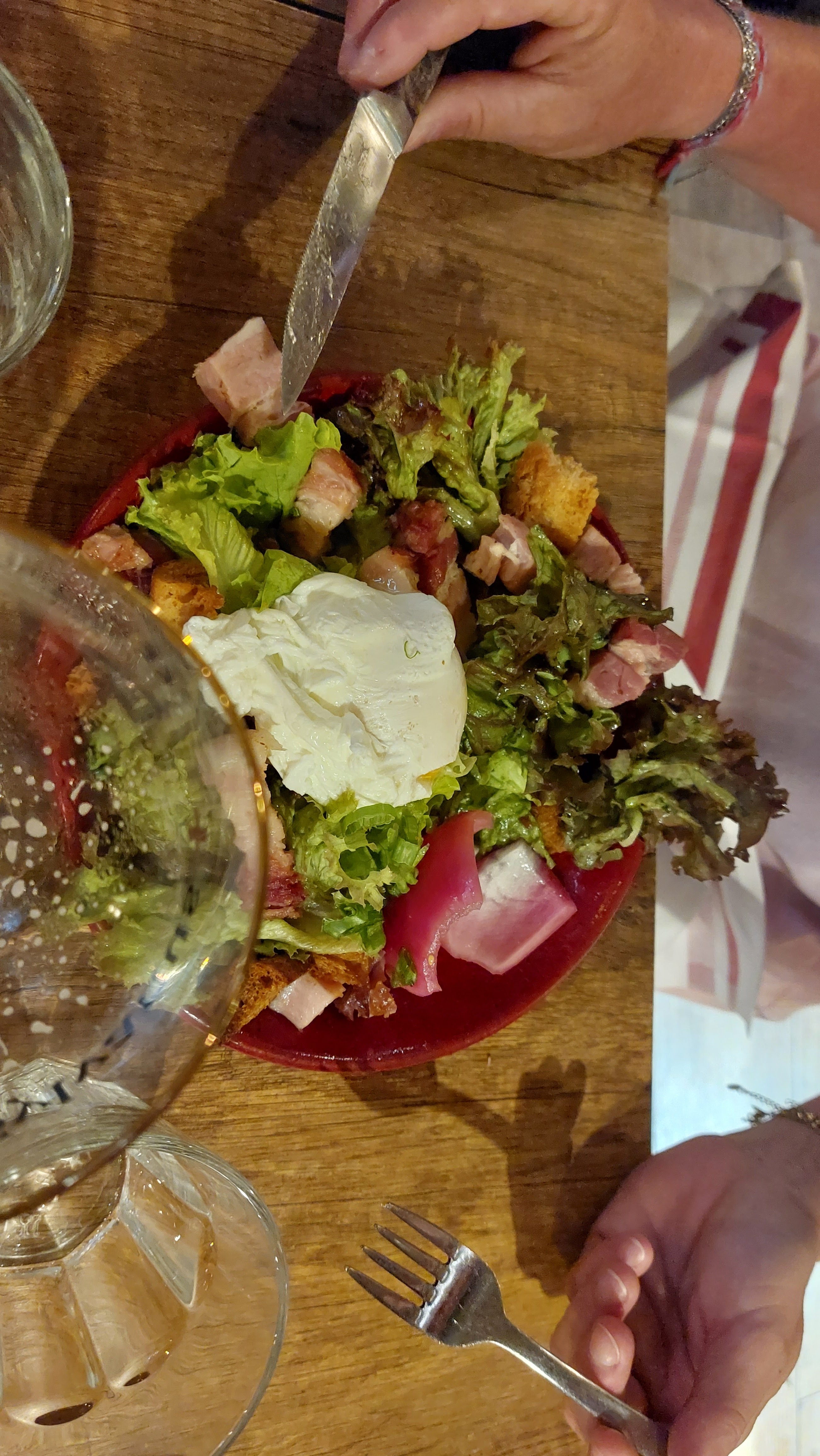 Super Bouchon Lyonnais, accueil chaleureux, Oeufs pochés en entrée, Tripes à la Lyonnaise succulentes, et j'allais oublié l'aperitivo le Spritz Aperol re-visité selon la recette de Santino. Un grand merci à Lydie, notre serveuse Forezienne qui nous a chouchouté avec sourire et humour.