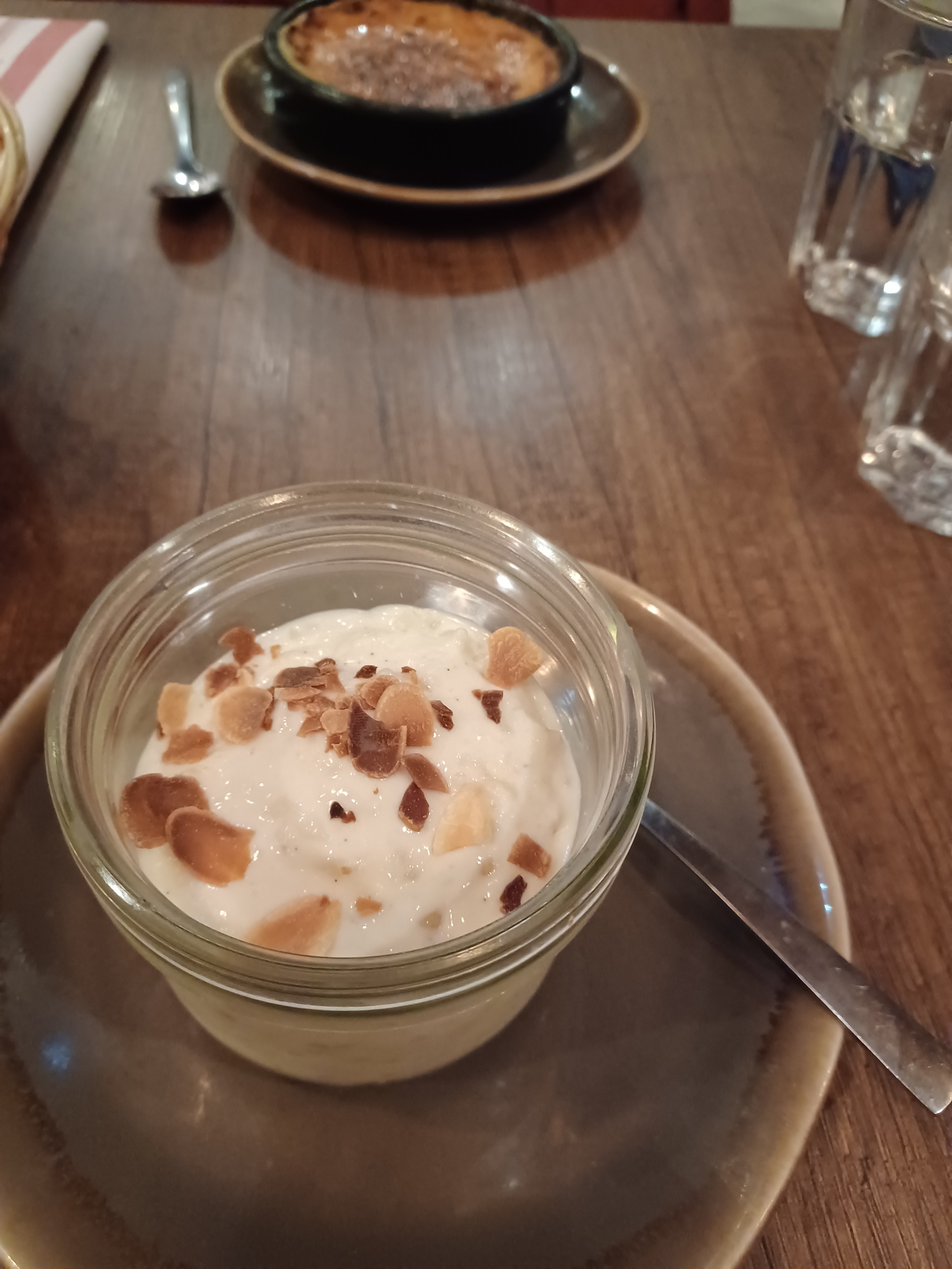 Bon mais sans plus.... service un peu à la volée : plats donnés rapidement, apéritif servi en même temps que l’entrée. Entrée et plat plutôt bons, dessert très médiocre.