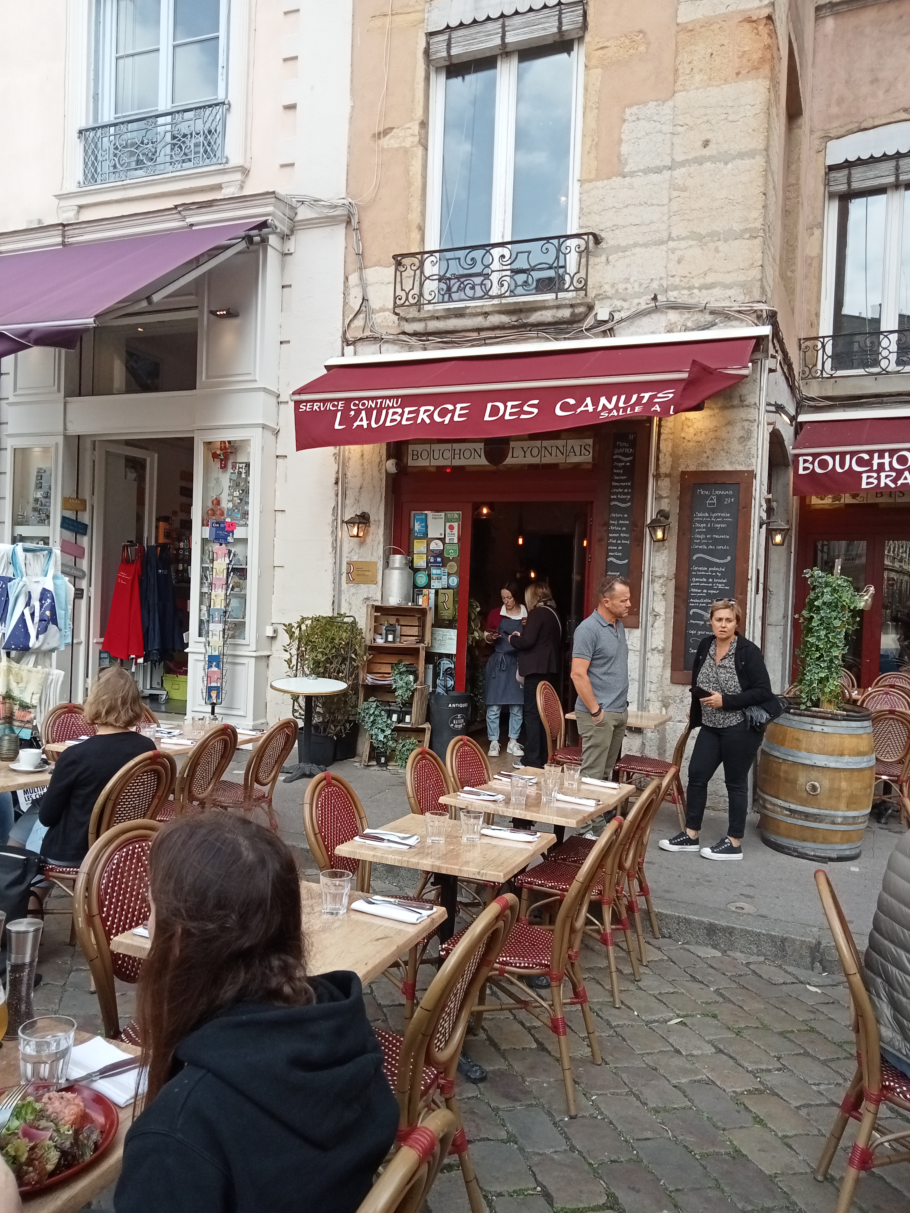On se trouve place St Jean dans le Vieux Lyon pour un moment convivial dans un bouchon Lyonnais à l'Auberge des Canuts. Au bord de la place piétonne on est au calme. Les plats sont vraiment sympas, la préparation est soignée et les préparations sont faites comme on aurait pu cuisiner avant. Les portions sont généreuses et les prix sont corrects. Je recommande chaleureusement, un incontournable du coin. À refaire 😋👍😊