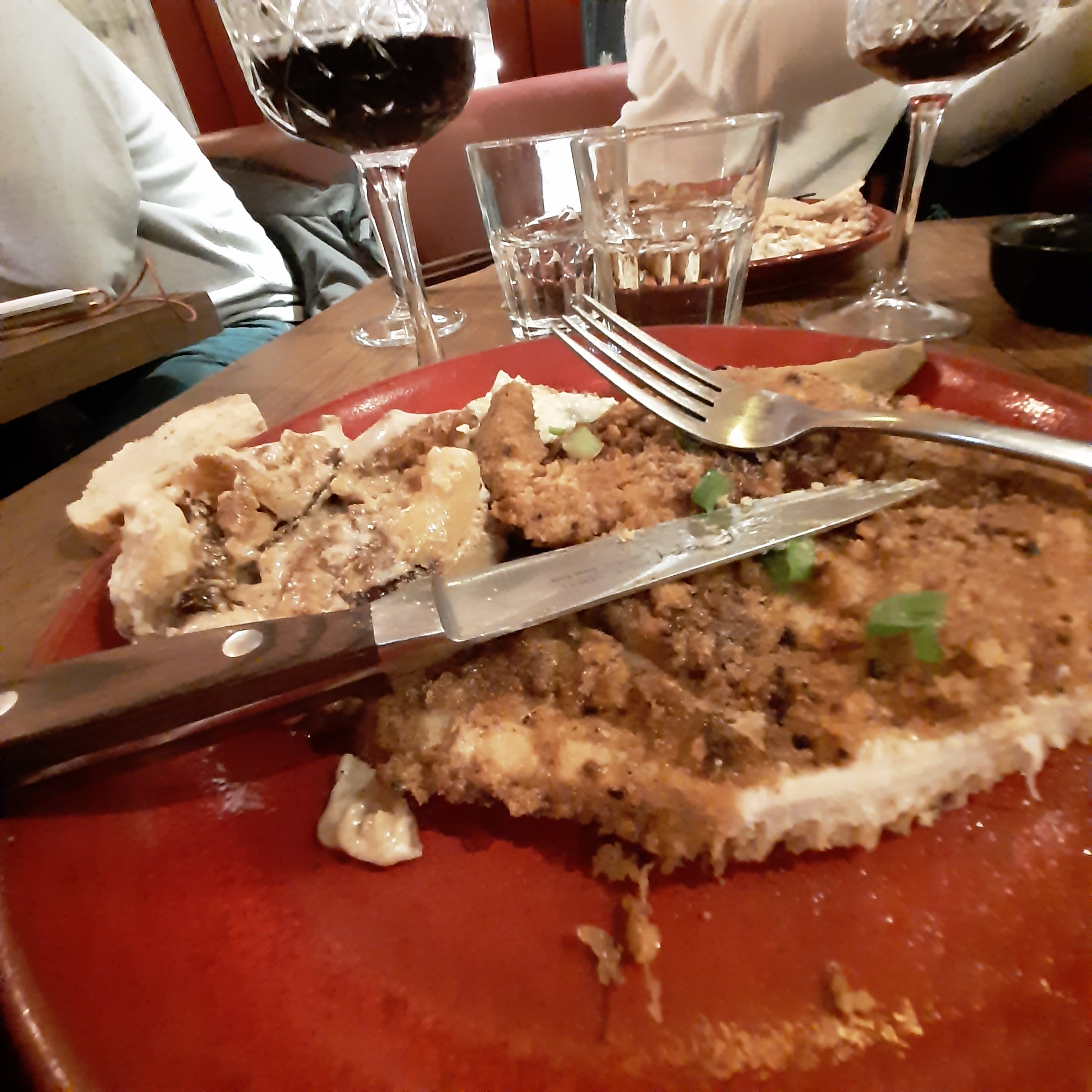 Nous nous y sommes arrêtés ce midi avec la pépette pour y découvrir l'une des nombreuses spécialités de Lyon en l'occurrence le fameux tablier de sapeur (pompier looool 😂 😂 😂 j'espère que vous l'avez !). Le tout accompagné d'un chti canon de rouge (st joseph somptueux) et nous voilà désormais totalement repus pour ce midi ! Le péché de gourmandise nous obligea a prendre l'assiette de fromage (il fallait finir les verres...) Rien a redire sur ce repas exceptionnel ! Il en est de même pour le service, simple et agréable qui nous a permis d'être dans une ambiance conviviale comme nous l'aimons ! Dommage que le cadre soit si déplaisant....la sublime vue de Lyon nous a été cachée par cette énorme bâtisse qu'on appelle apparemment cathédrale St jean(Il s'agit évidemment d'une farce, c'est juste magnifique) Après mûre et framboise réflexion, nous sommes clairs : NOUS RECOMMANDONS FORTEMENT 2 touristes en balade.