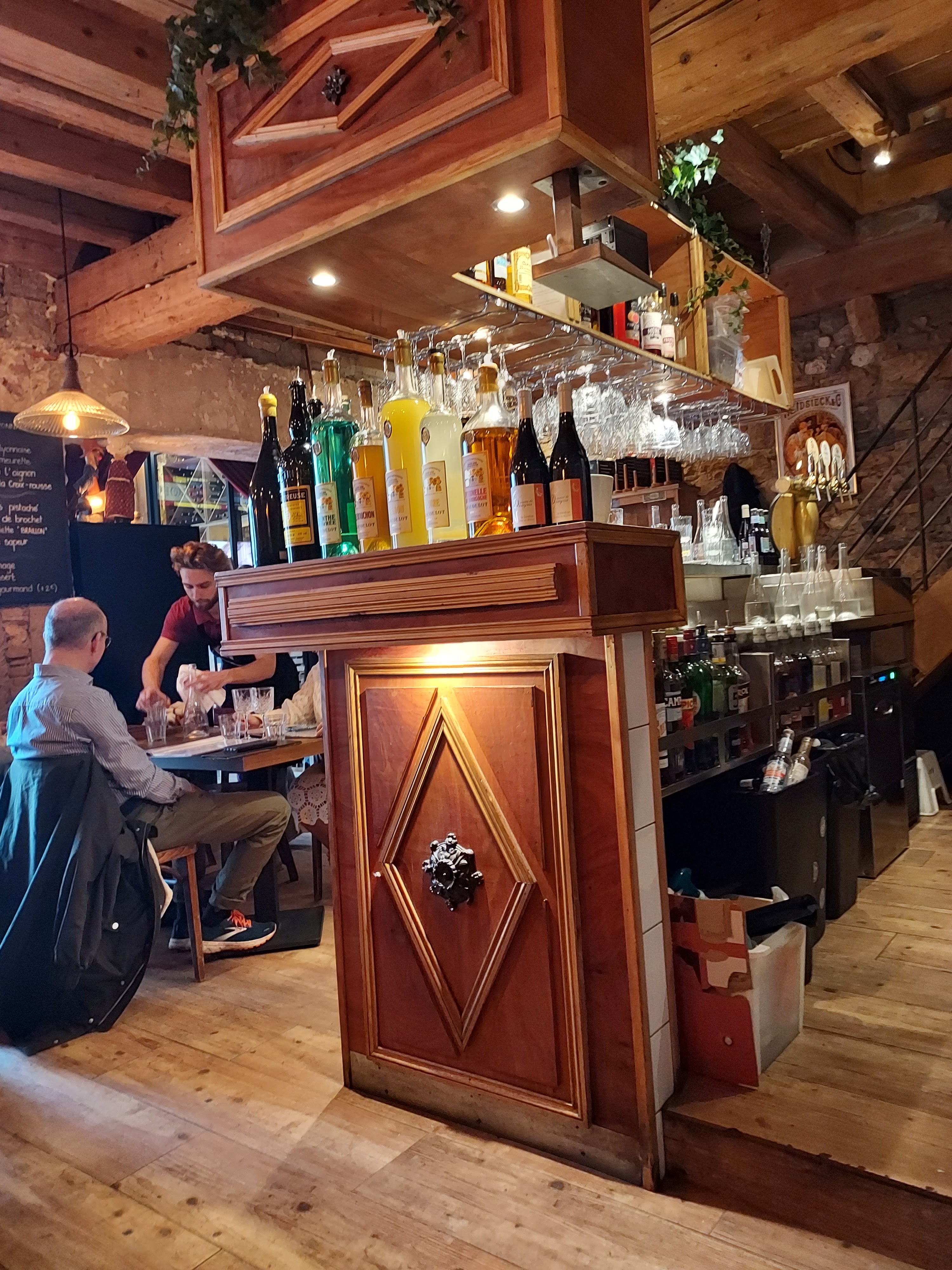 Petit bouchon très sympa, assiettes très bien présentées et très bonnes. Service assez rapide . Et cadre splendide ! Proche de la rue St Jean, avec une belle vue sur la basilic de fourvière et au pied de l'église Saint jean.