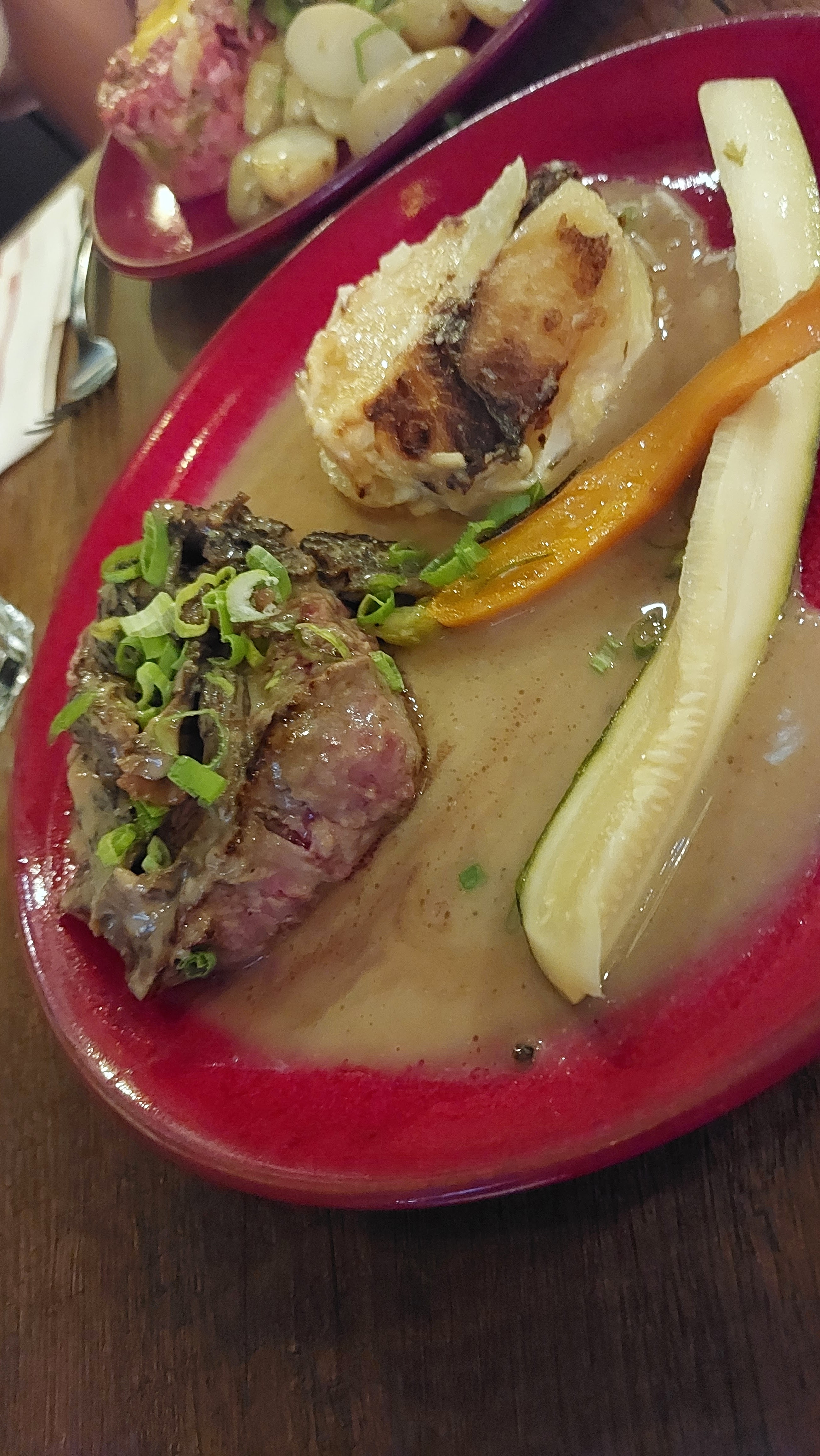 Alors viande assez bonne mais pour le reste pas terrible.. Le gratin dauphinois avait un goût de réchauffer pas top pas frais. Ça reste correct un peu cher pour le prix mais je n'y retournerai pas.