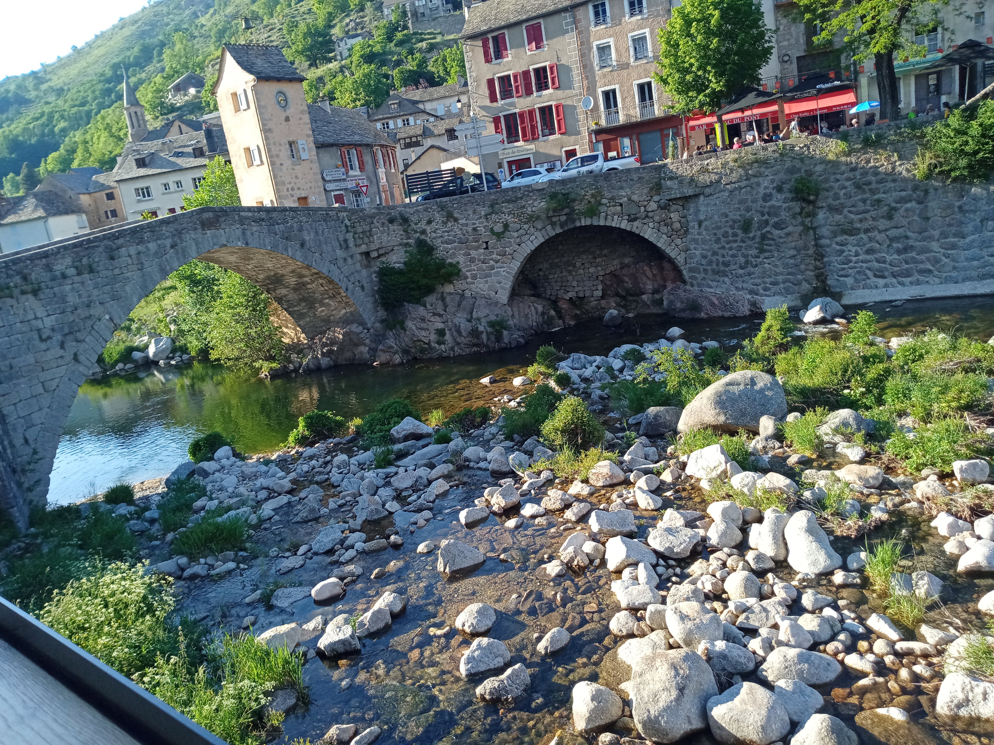 L'Auberge est en plein centre du village, avec une terrasse offrant une belle vue sur le Tarn et son pont pittoresque. Très bon accueil aimable, avec rafraîchissement maison offert. Notre chambre, au premier étage de l'annexe, était moderne, sobre, très claire, propre, spacieuse et ... très calme. Très bon dîner (nous avons même pu en sortant de table discuter avec le sympathique cuisinier!), tout comme le petit-déjeuner, avec produits locaux, idéal pour les randonneurs sur le Chemin de Stevenson (le GR 70 en direction de Florac démarre au pied de l'annexe...)! Bref, une étape très recommandable!