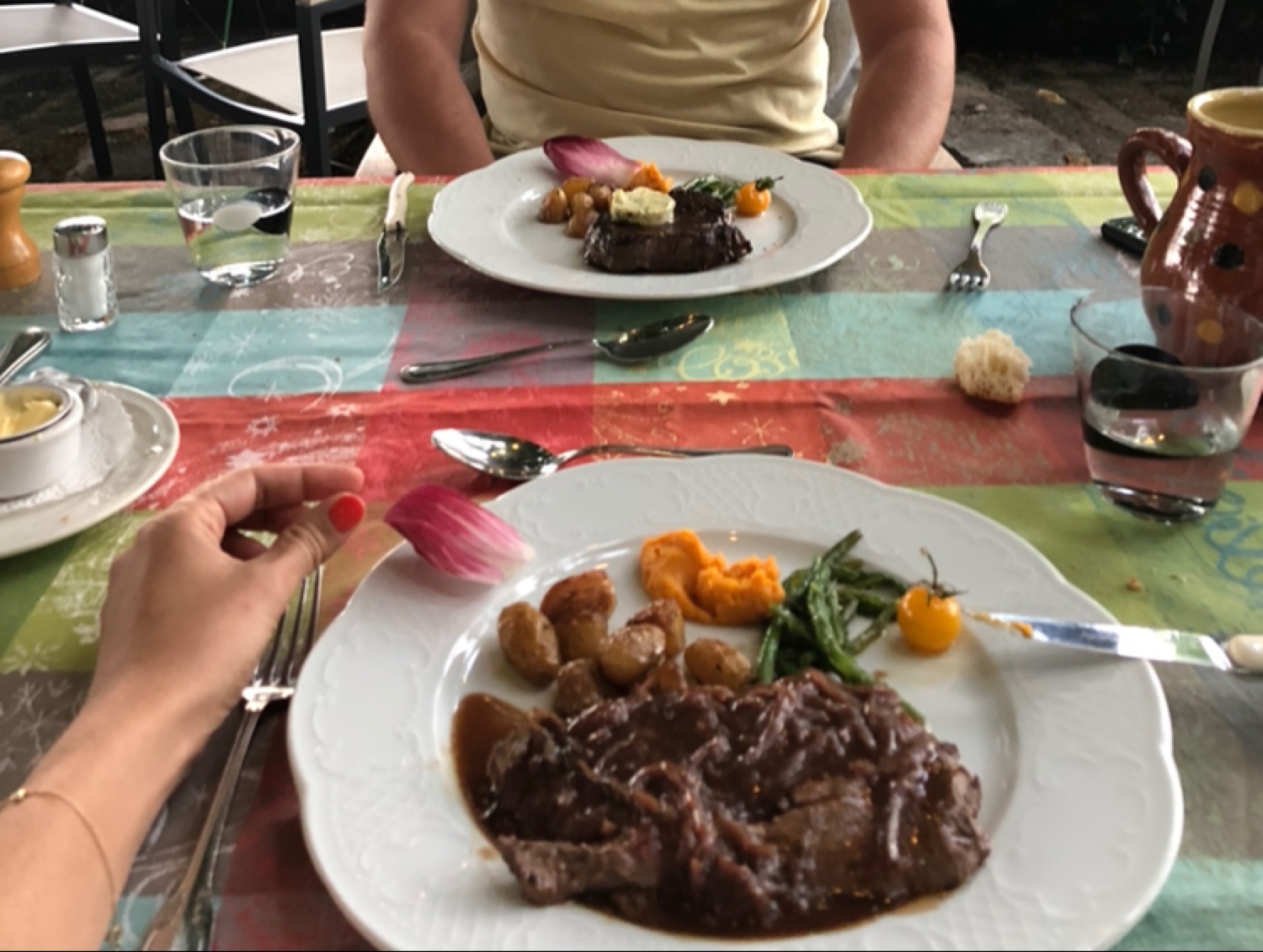 La viande était excellente, l'endroit est très charmant, très calme avec une belle vue. La terrasse est bien aussi.